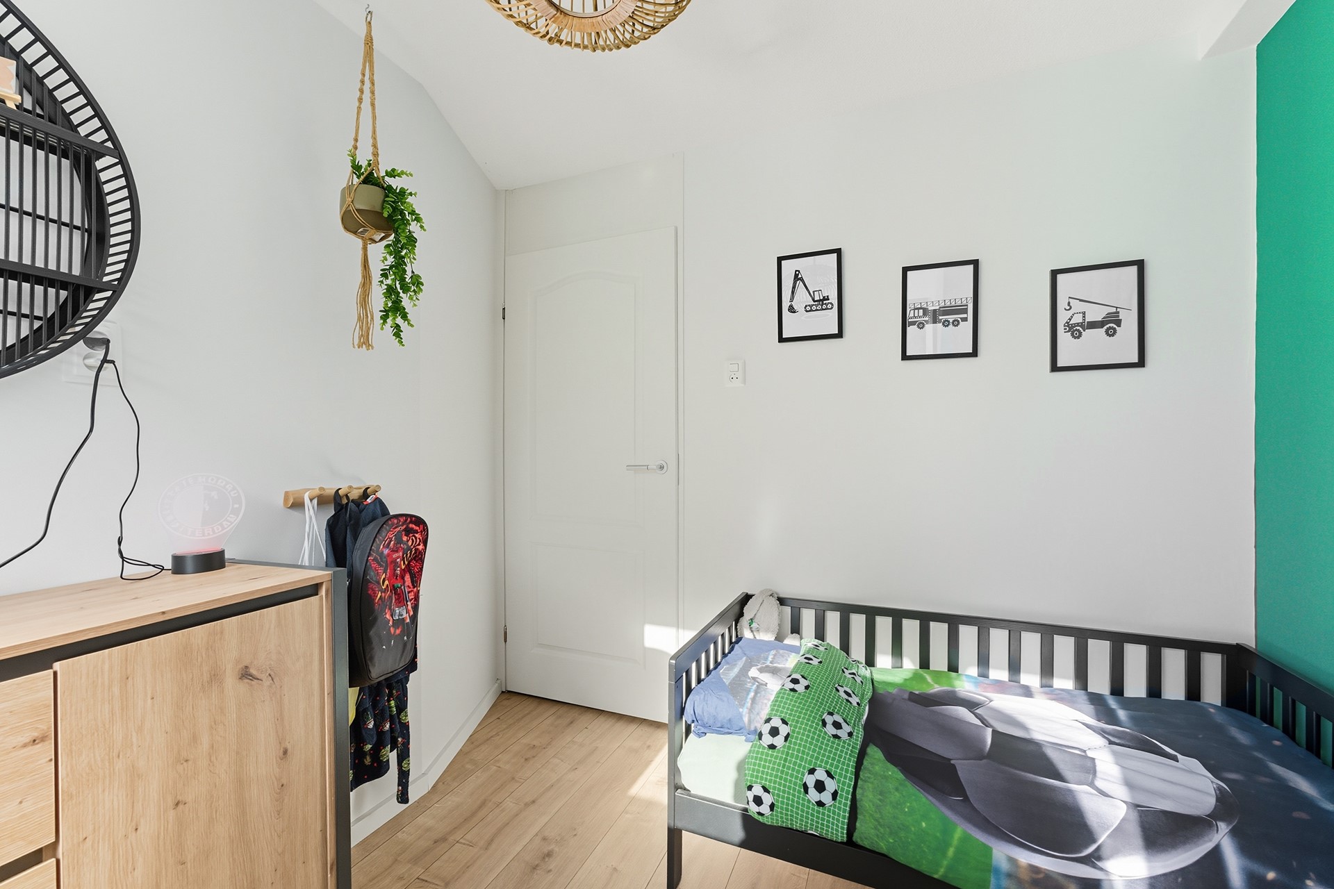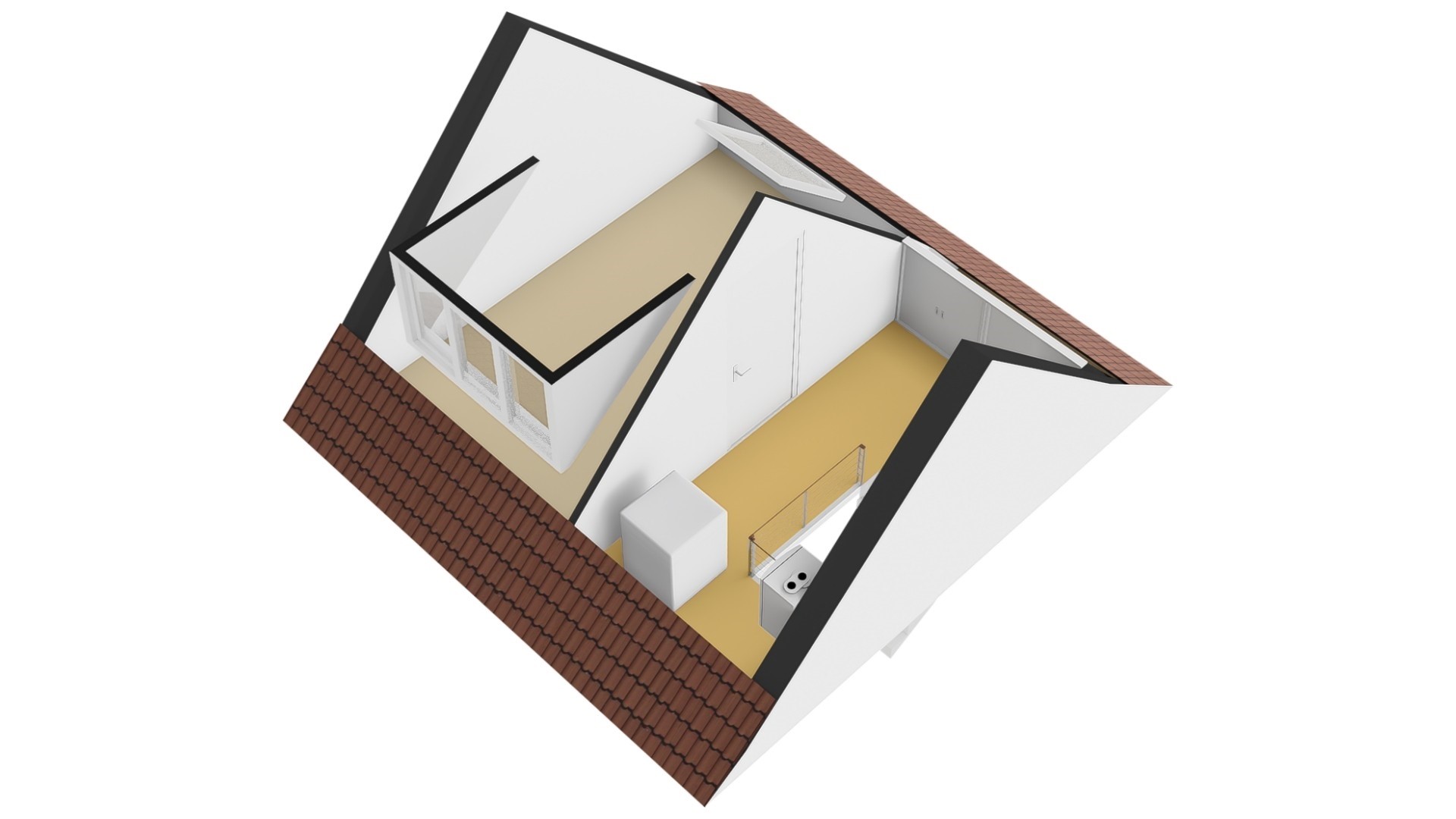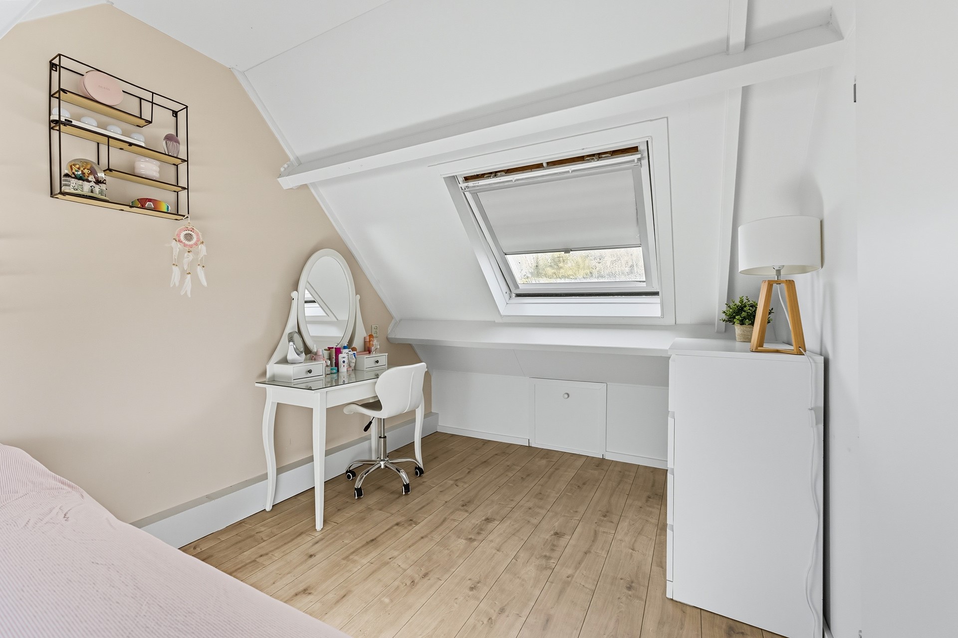 Slaapkamer 3: Knusse slaapkamer met dakkapel en een ingebouwde kast, ideaal voor garderobe of extra opbergruimte. De kamer ligt aan de achterzijde en is voorzien van een rolluik.