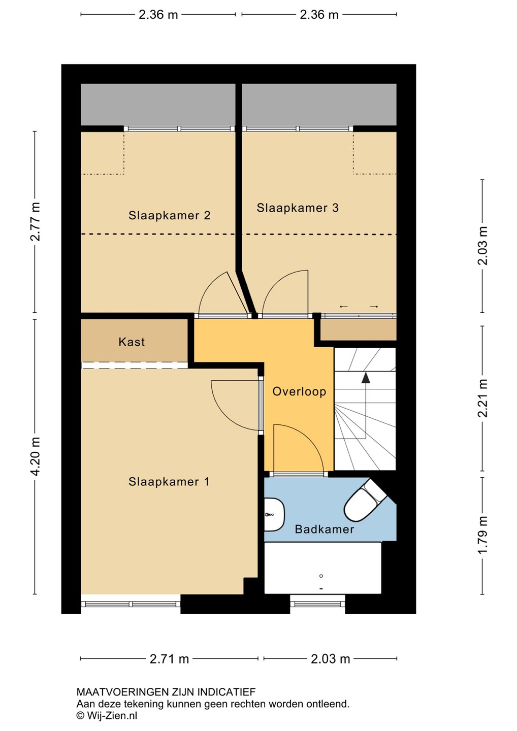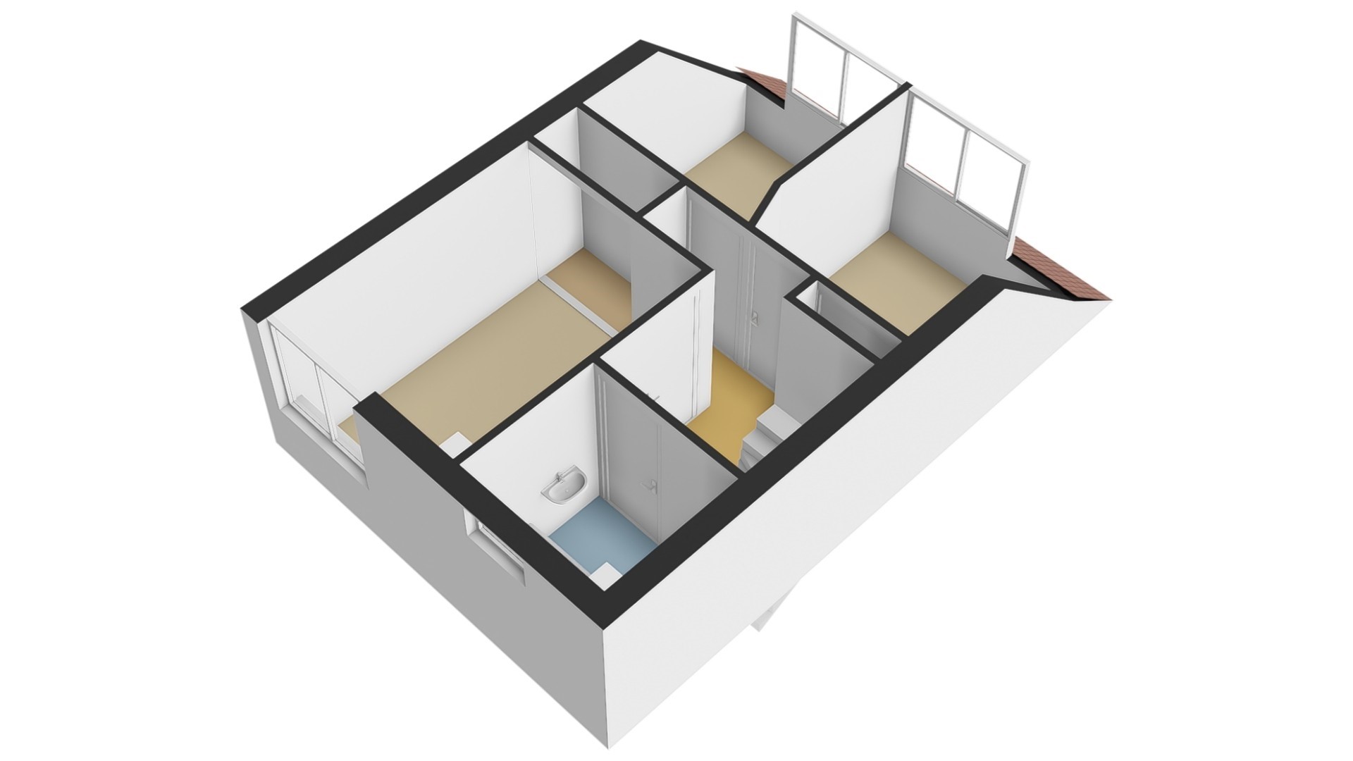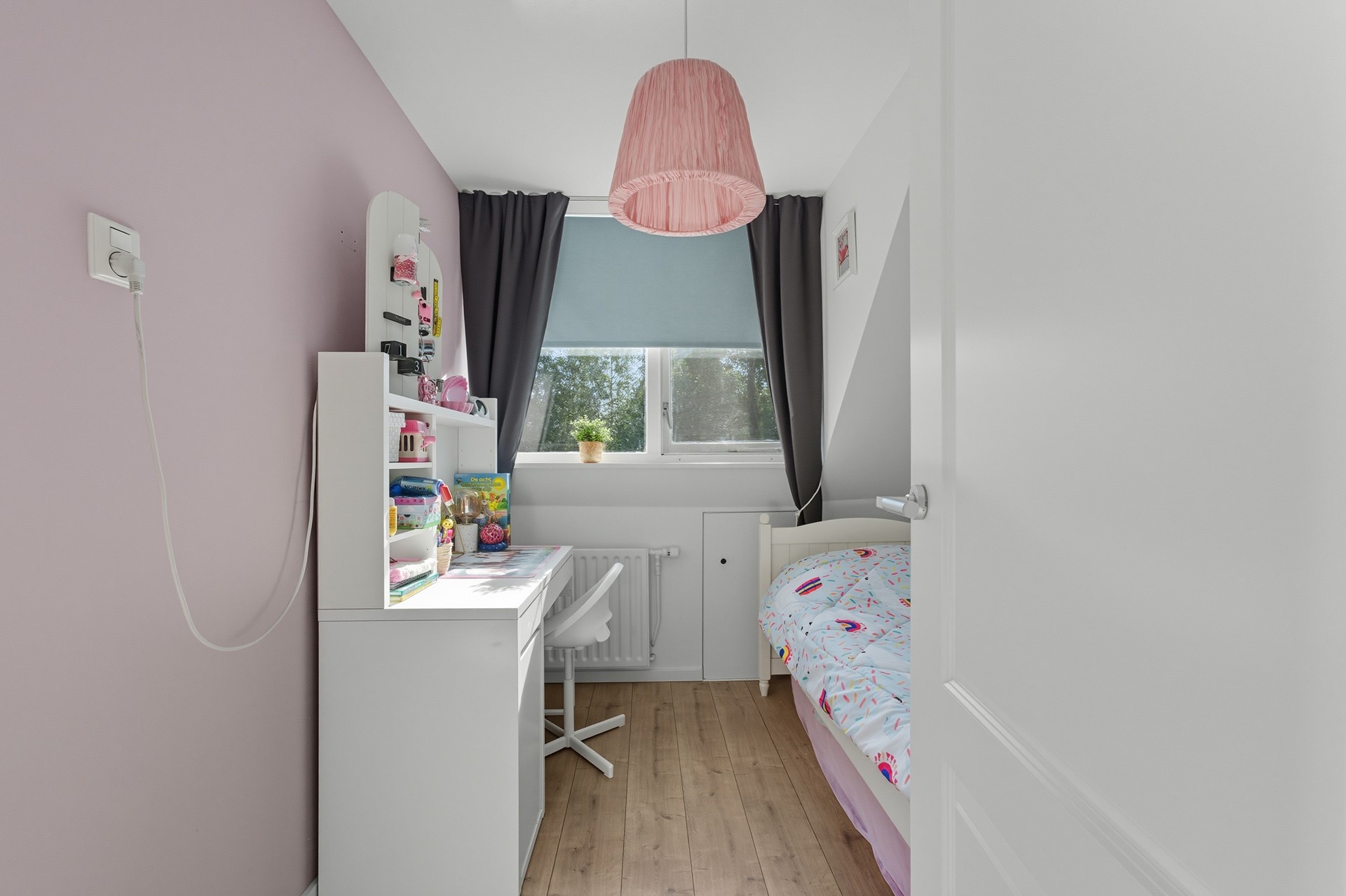Slaapkamer 3: Knusse slaapkamer met dakkapel en een ingebouwde kast, ideaal voor garderobe of extra opbergruimte. De kamer ligt aan de achterzijde en is voorzien van een rolluik.