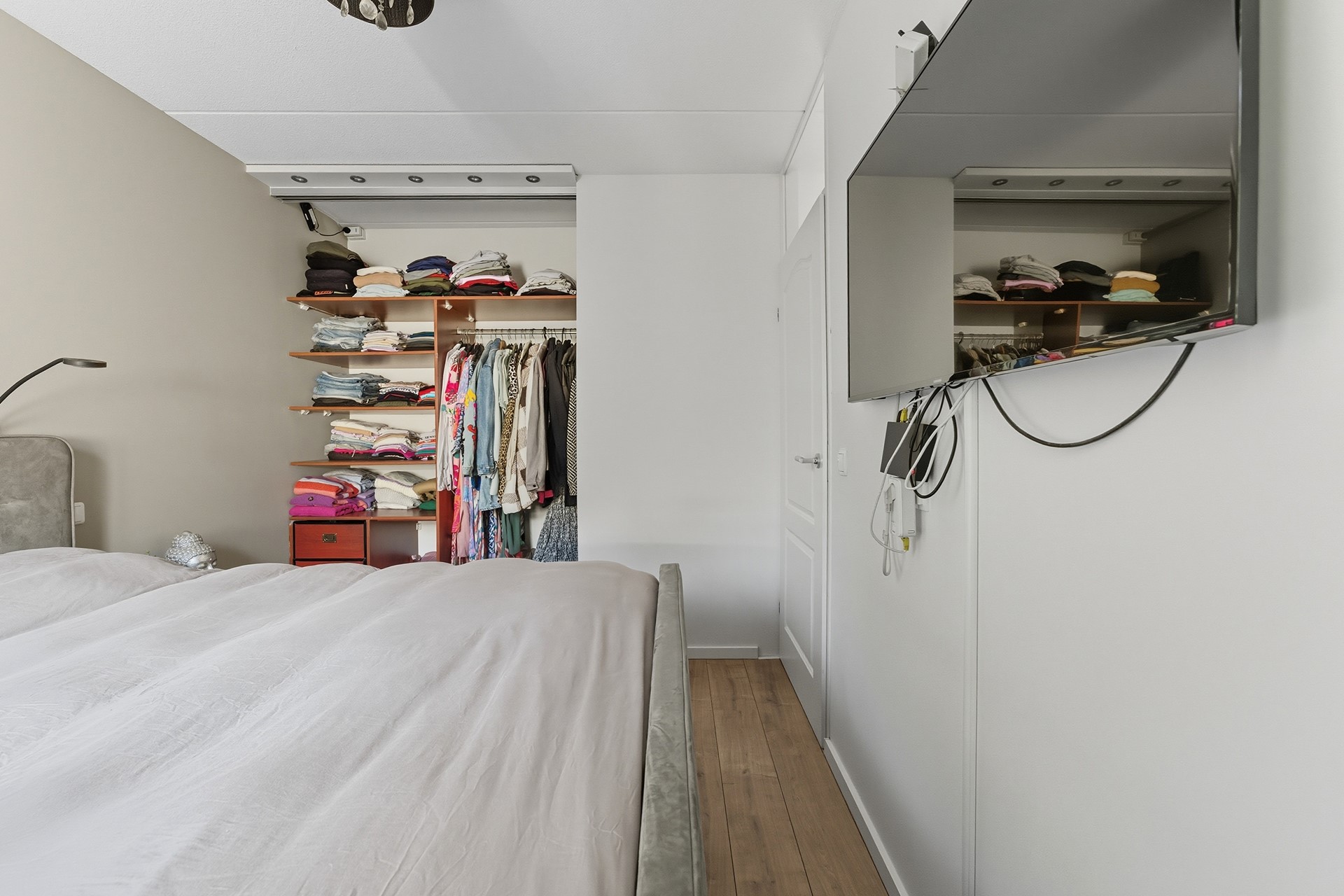 Slaapkamer 1: Keurige slaapkamer aan de voorzijde van de woning, met een open garderobehoek om je kleding netjes op te bergen. De kamer is voorzien van een rolluik en airconditioning, wat zorgt voor comfort en een aangename temperatuur.