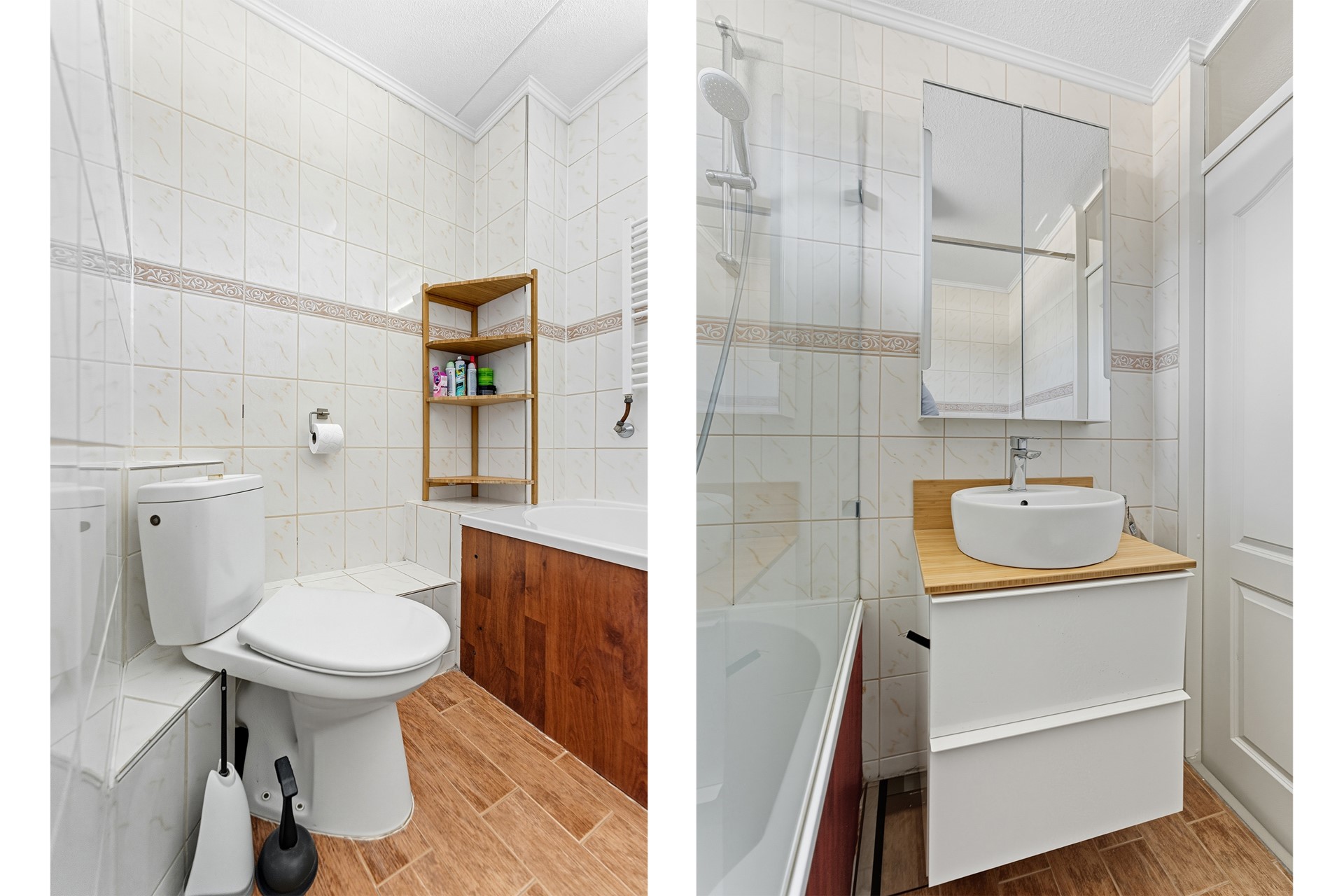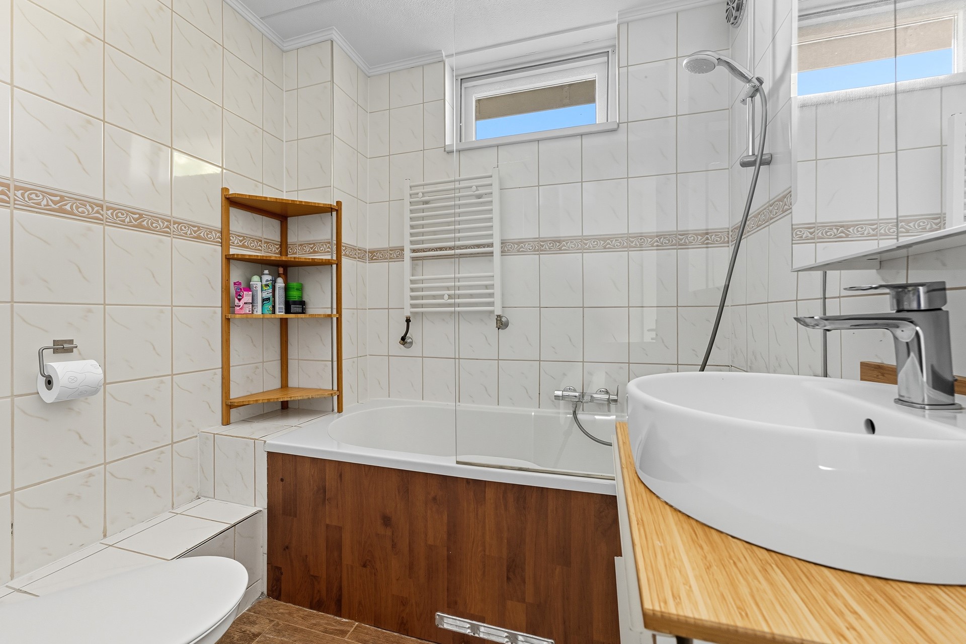 Badkamer: De praktisch ingedeelde badkamer is van alle gemakken voorzien. Het moderne wastafelmeubel geeft een eigentijdse toevoeging. De ruimte beschikt over een toilet, ligbad met douchegelegenheid, design radiator, een meubel met geïntegreerde wastafel en mechanische ventilatie.