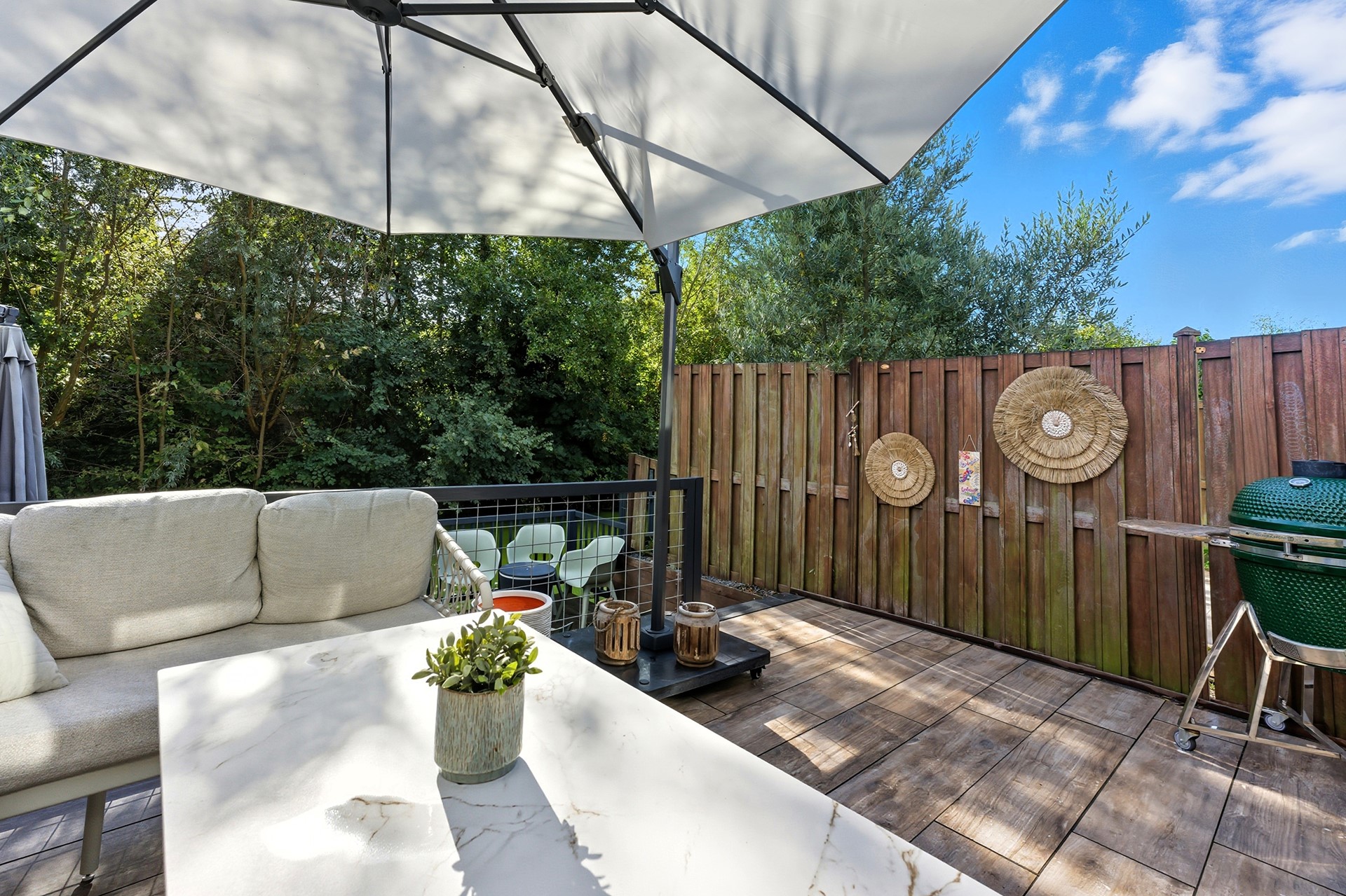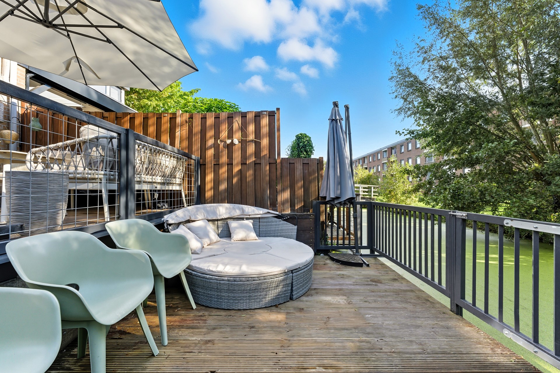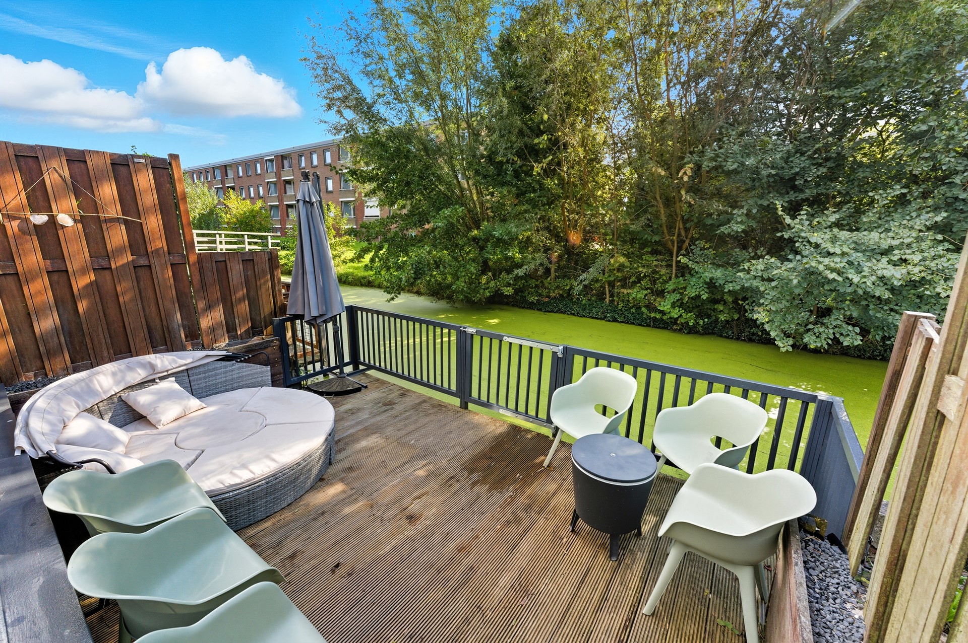 Achtertuin: Strak en nieuw aangelegde achtertuin (afm. ca. 6,35 x 5,08) met een heerlijk terras en een mooie, houten vlonder aan het water. Hier kun je in alle rust genieten van het buitenleven en gezellige avonden organiseren met vrienden of familie.
