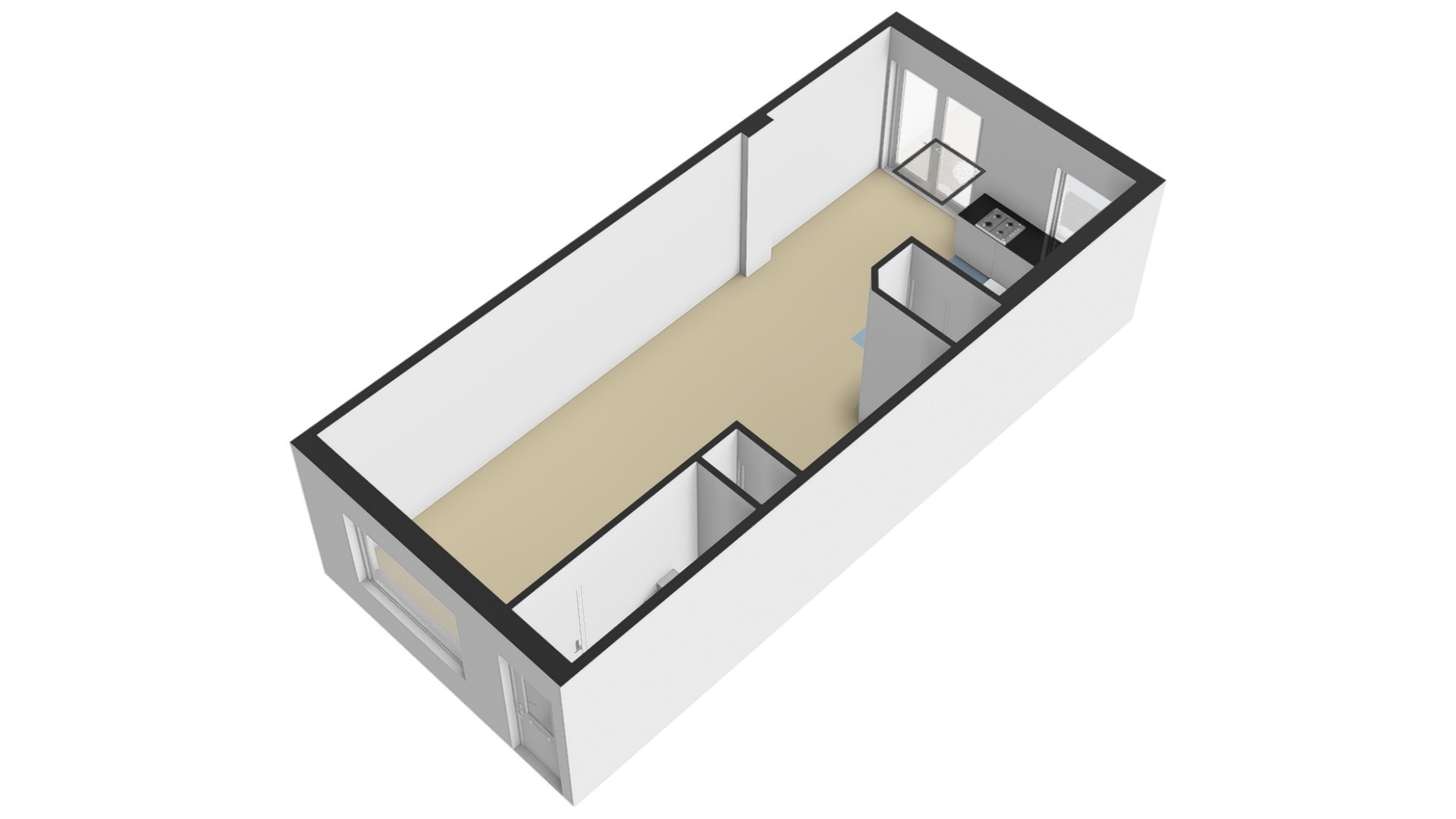 Toilet: Het toilet is voorzien van een zwevend closet, een wastafel, mechanische ventilatie en leuke verlichting (RGB). De ruimte is netjes afgewerkt.