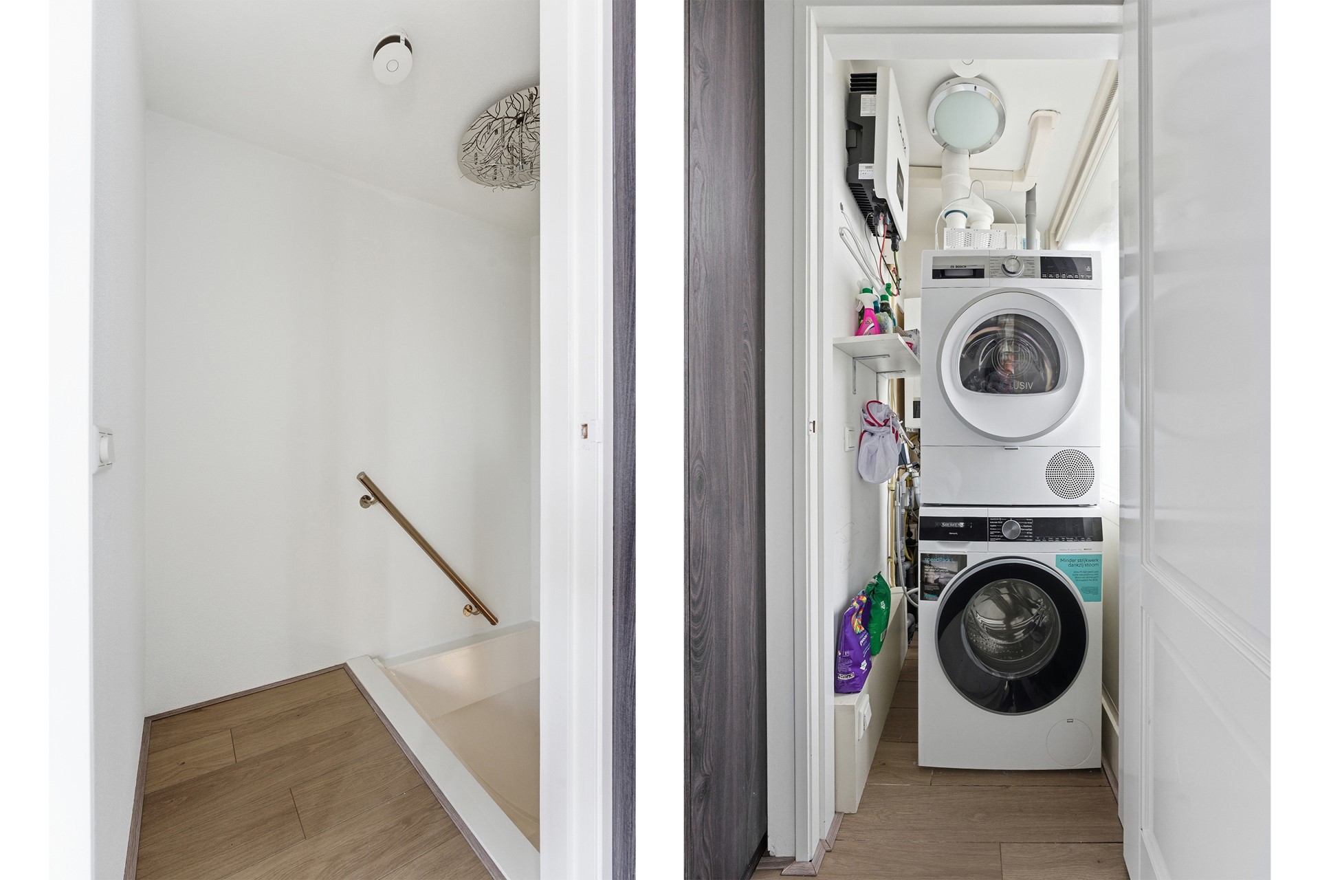 Wasruimte: In de technische ruimte bevinden zich de wasmachine- en drogeraansluiting, de omvormer, de mechanische ventilatiebox, de Nefit Trendline Cv-ketel uit 2020 en de hybride warmtepomp uit 2025. Tevens beschikt de woning over een thuis accu van 5 KW (Marstek).