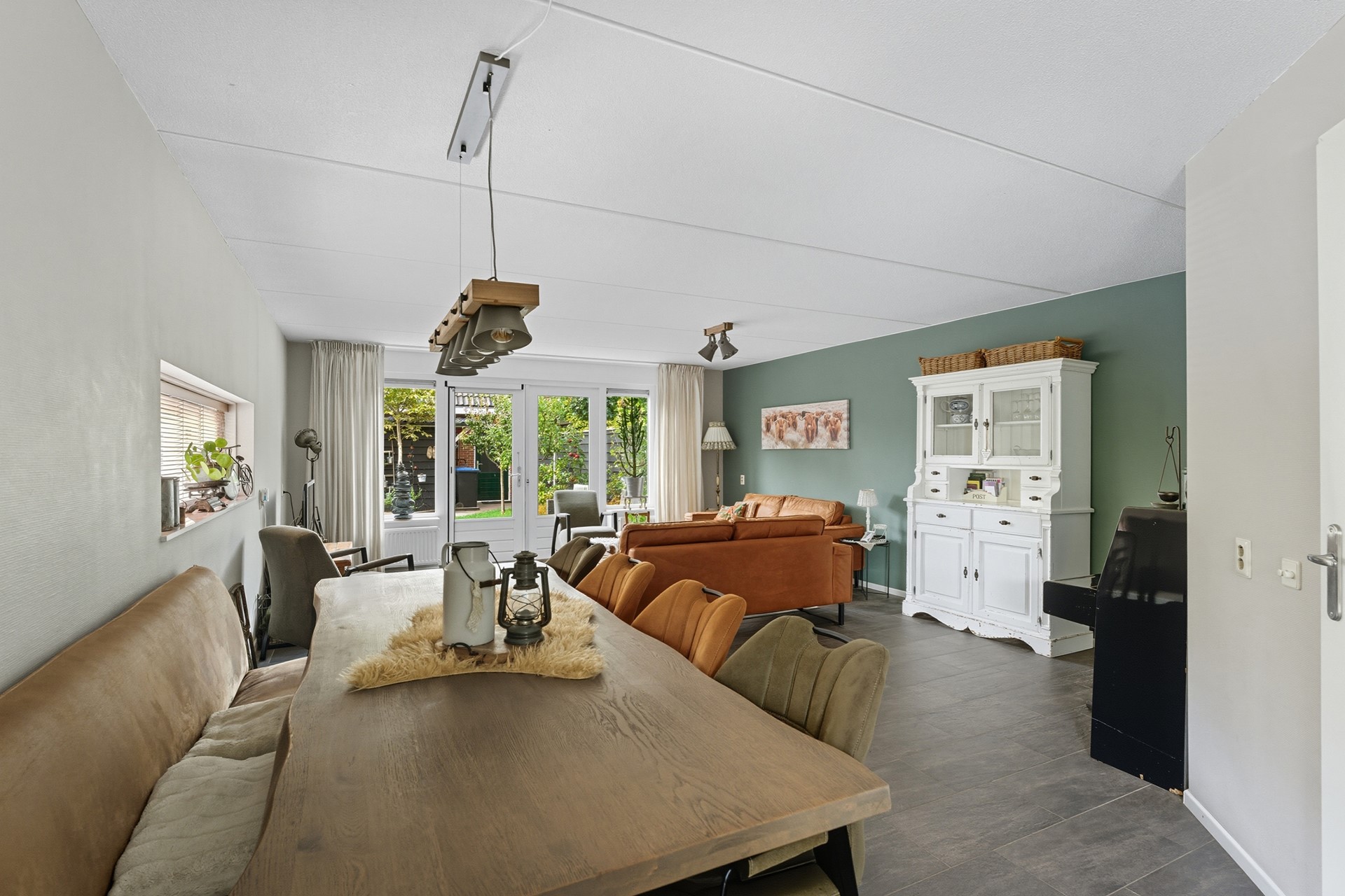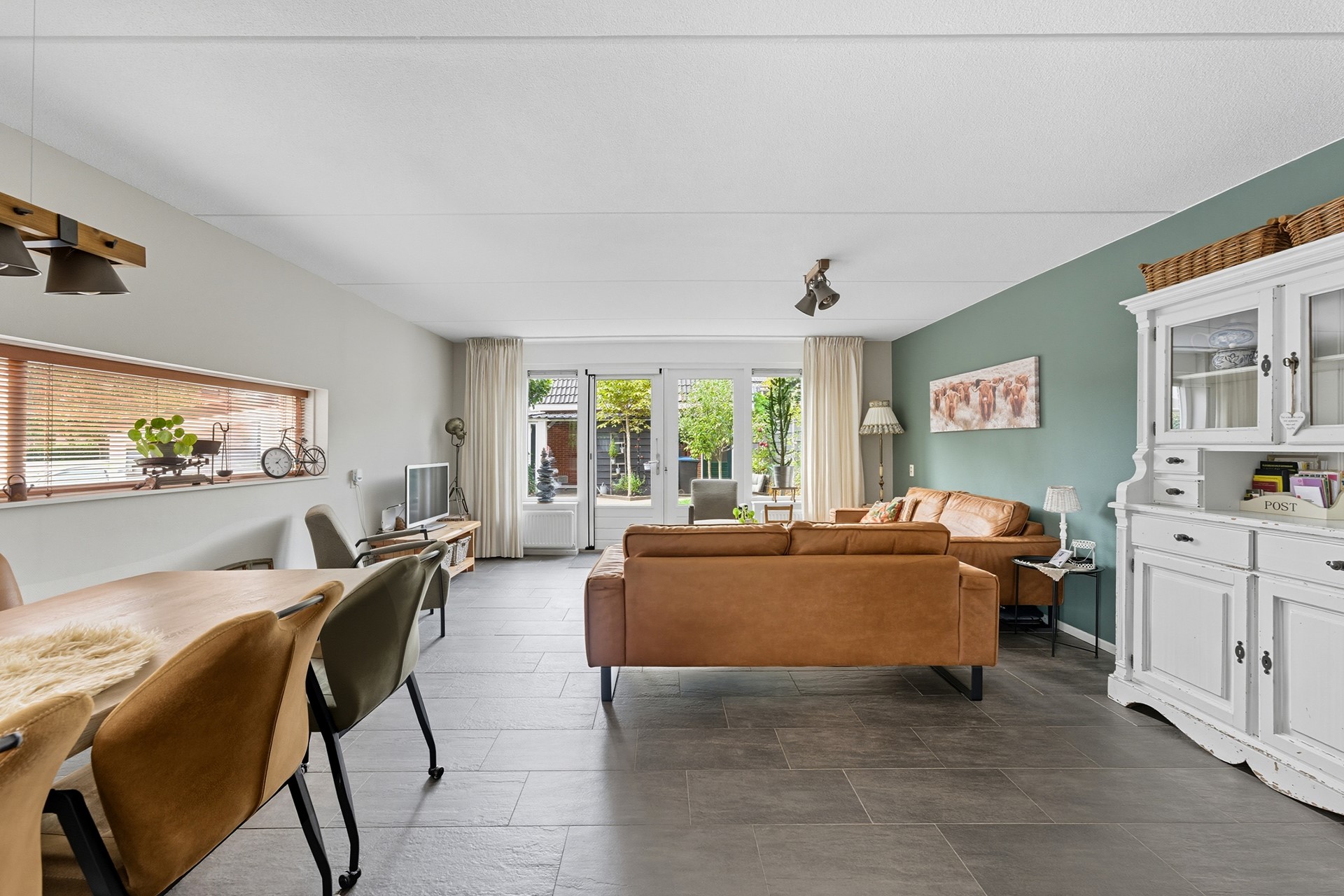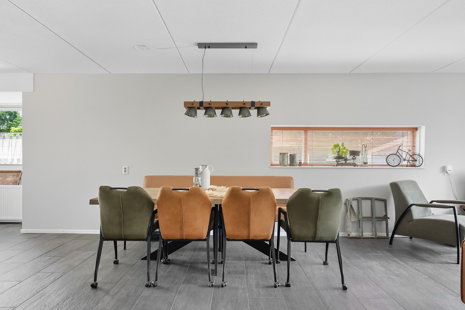 Woonkamer: De woonkamer is een lichte, uitnodigende ruimte waar je je direct thuis voelt. Openslaande deuren bieden een prachtig zicht op de tuin en ook het zijraam laat het daglicht binnenstromen. Voor extra comfort is er vloerverwarming aanwezig. De woonkamer is afgewerkt met een plavuizen vloer, spuitwerk plafond en glasvlies behang wanden.