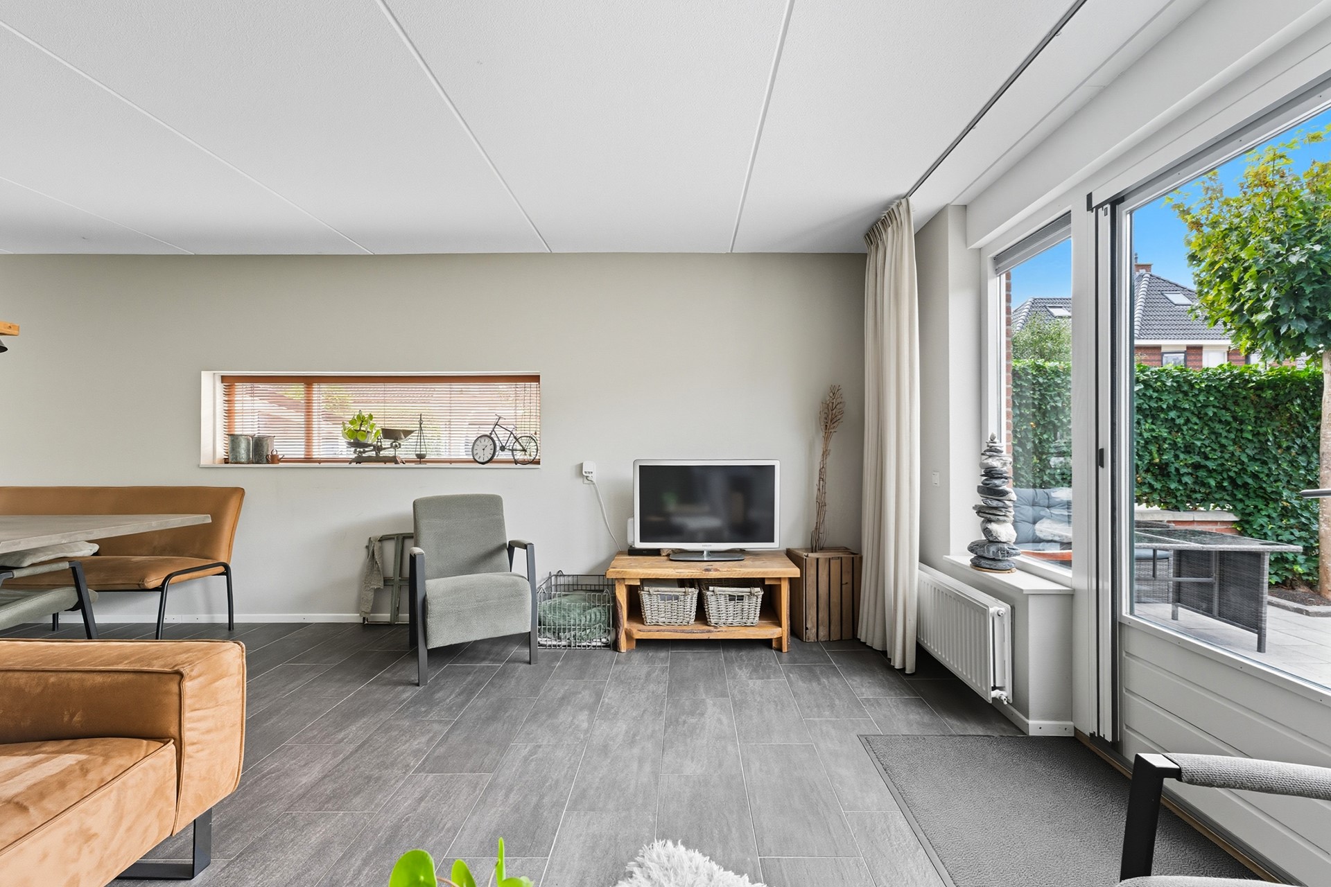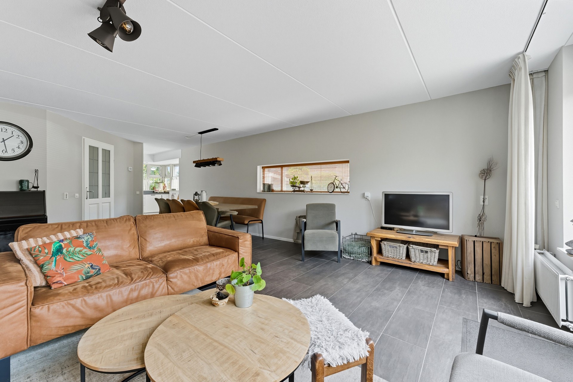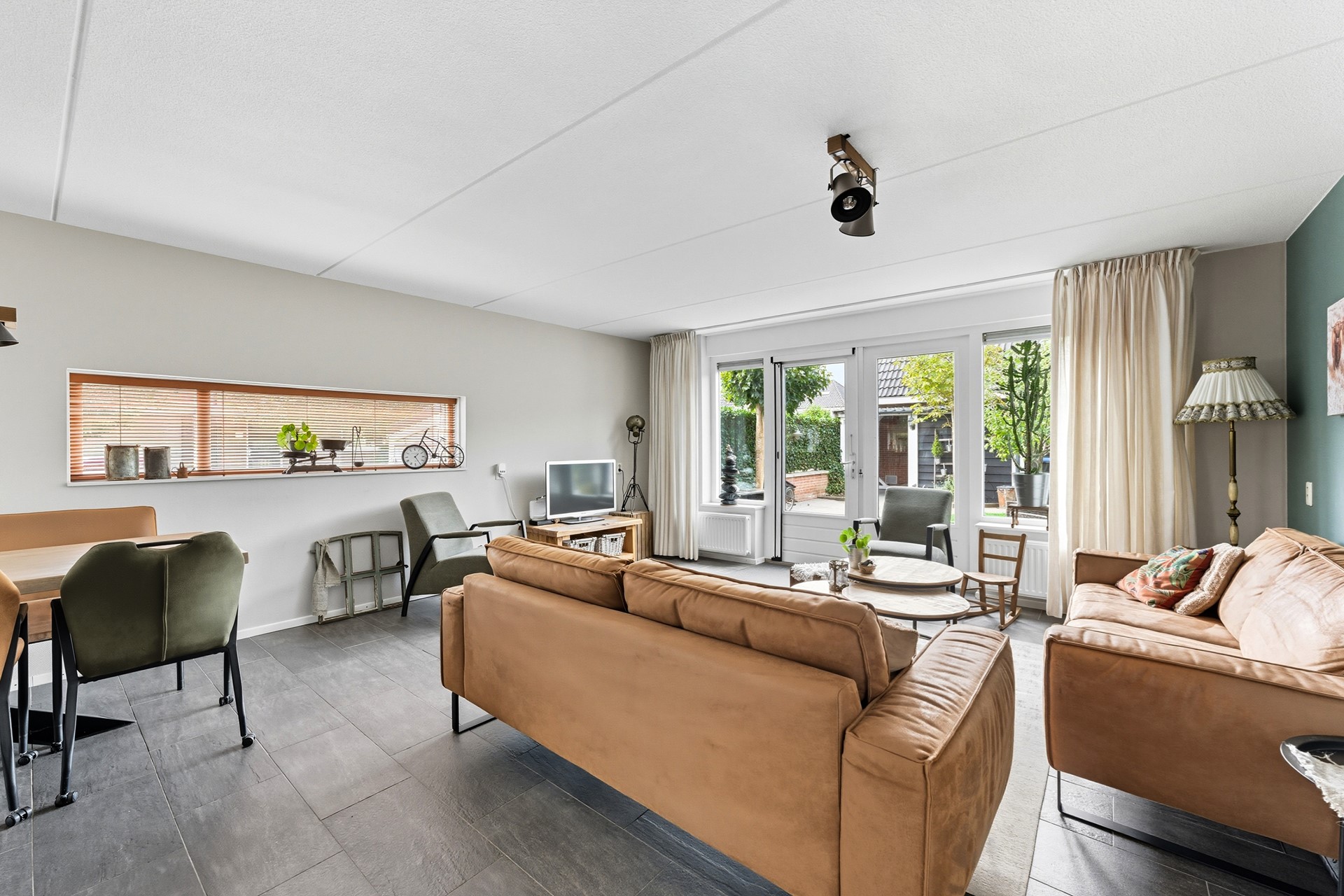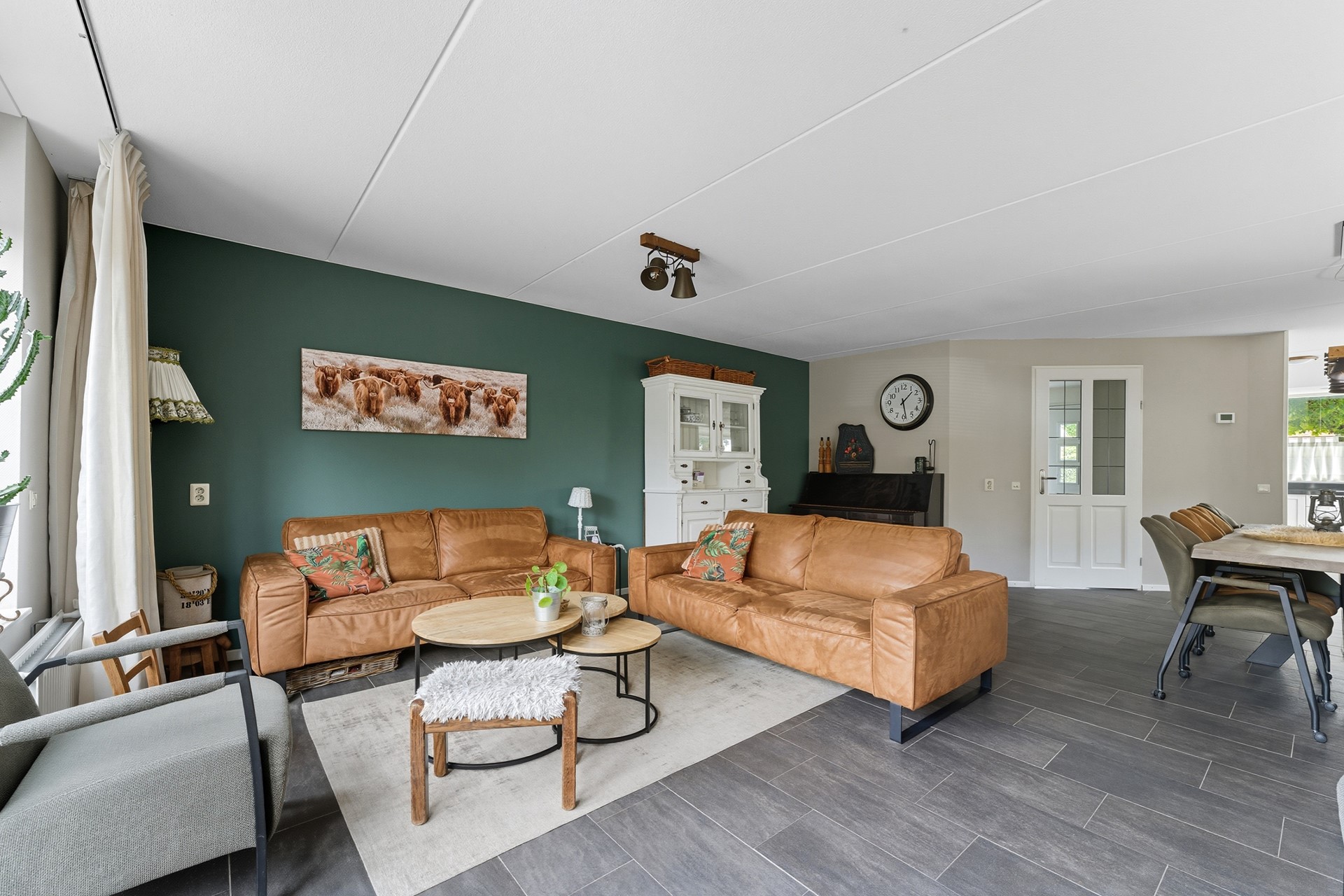 Woonkamer: De woonkamer is een lichte, uitnodigende ruimte waar je je direct thuis voelt. Openslaande deuren bieden een prachtig zicht op de tuin en ook het zijraam laat het daglicht binnenstromen. Voor extra comfort is er vloerverwarming aanwezig. De woonkamer is afgewerkt met een plavuizen vloer, spuitwerk plafond en glasvlies behang wanden.
