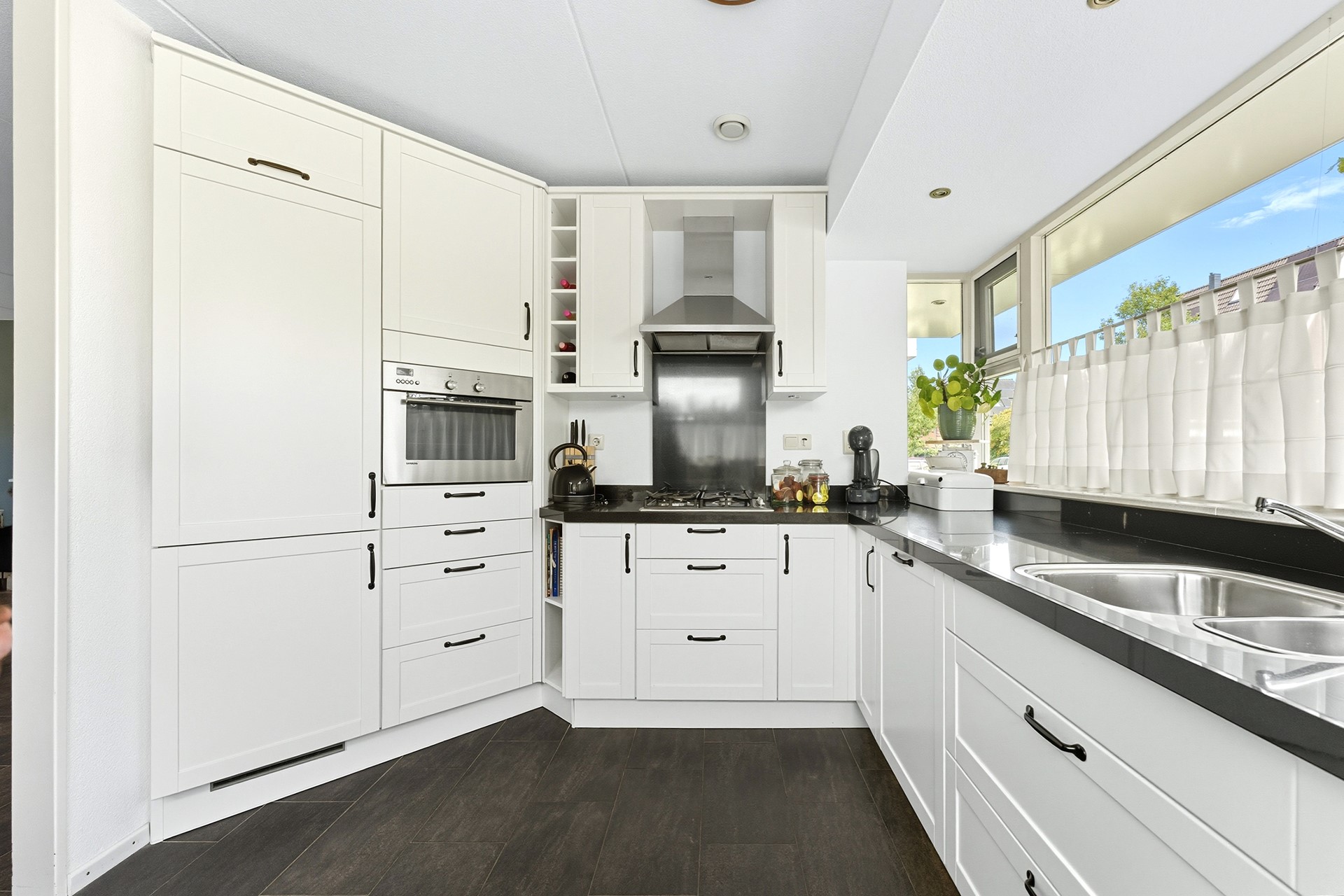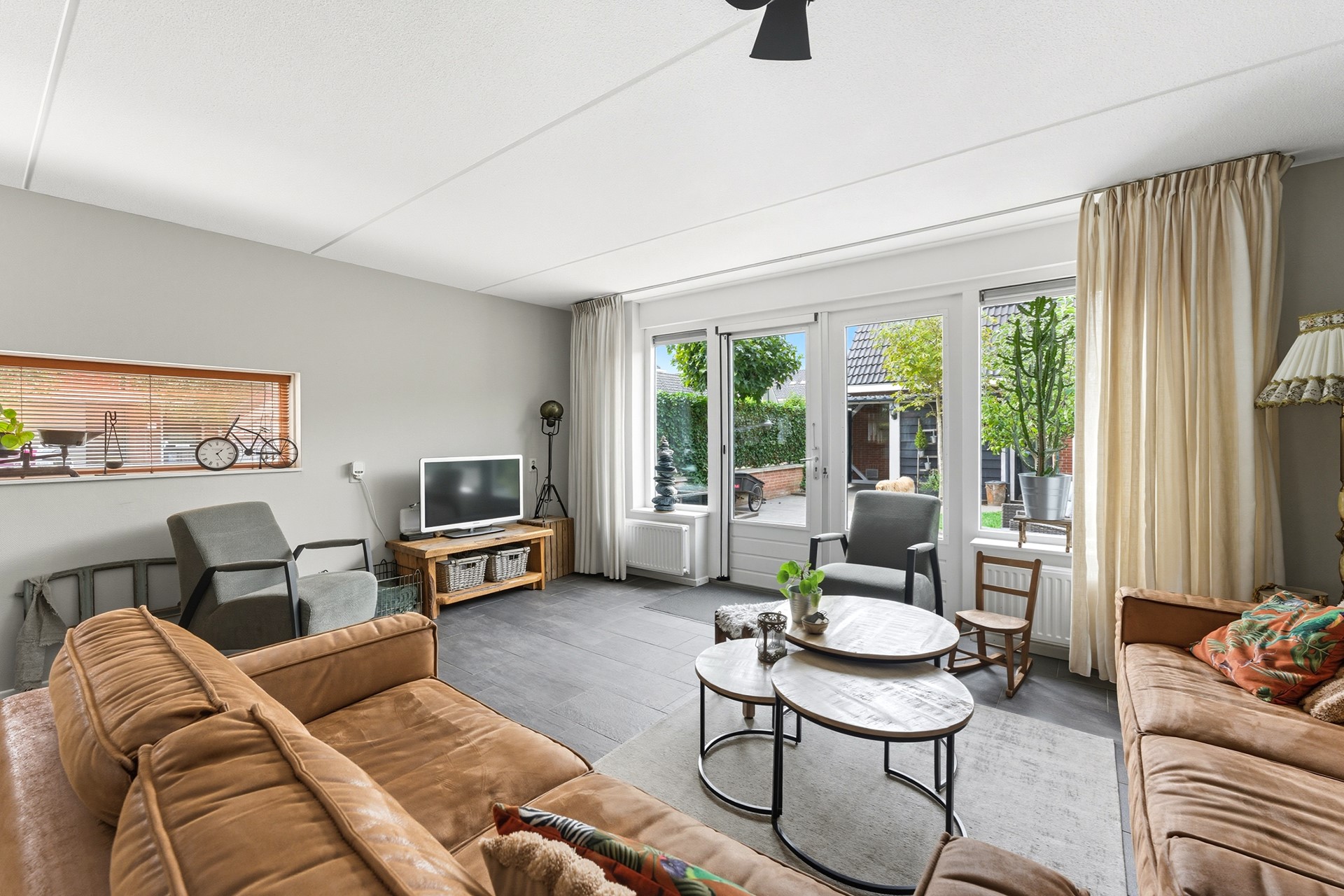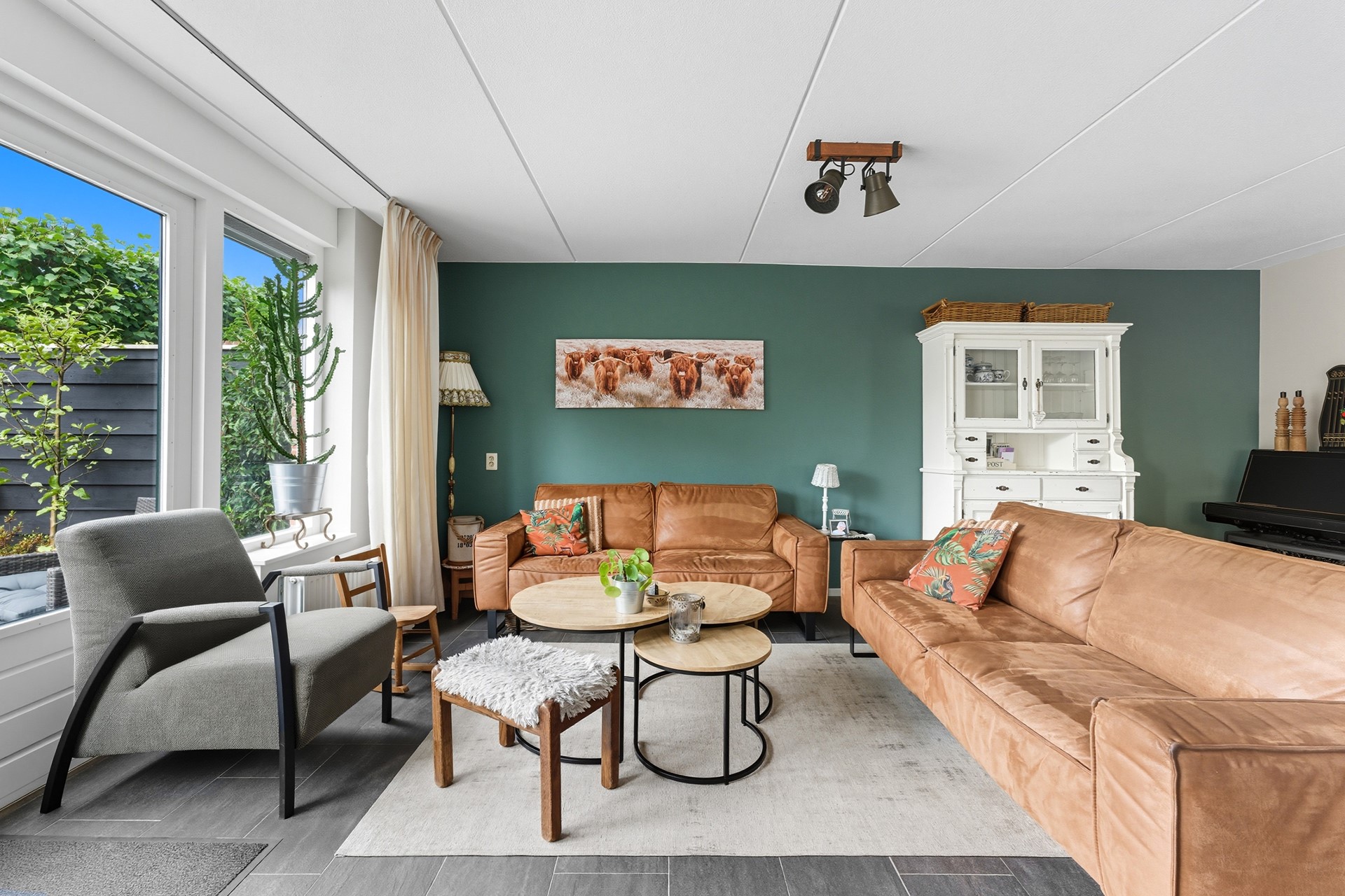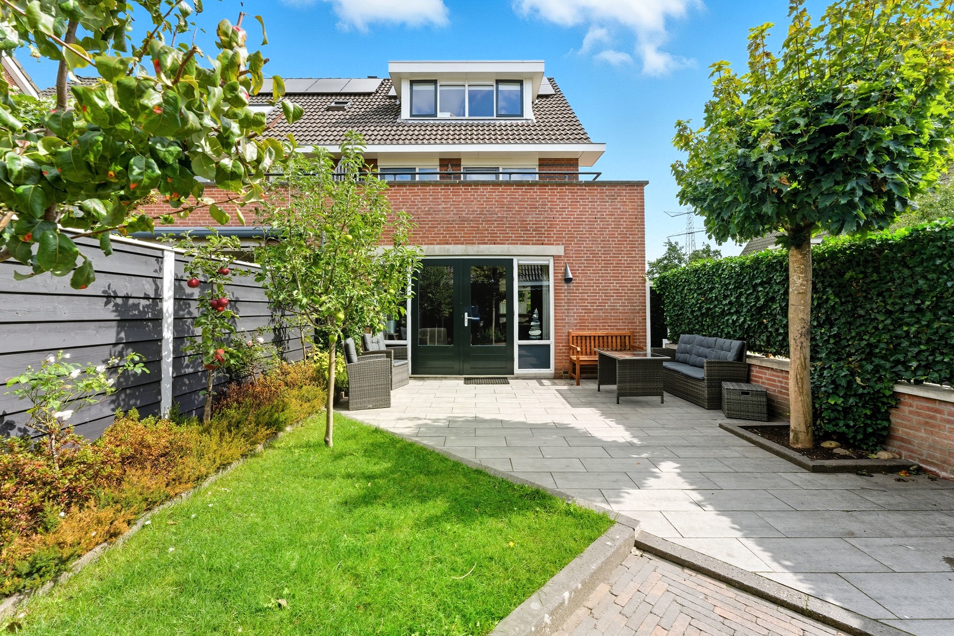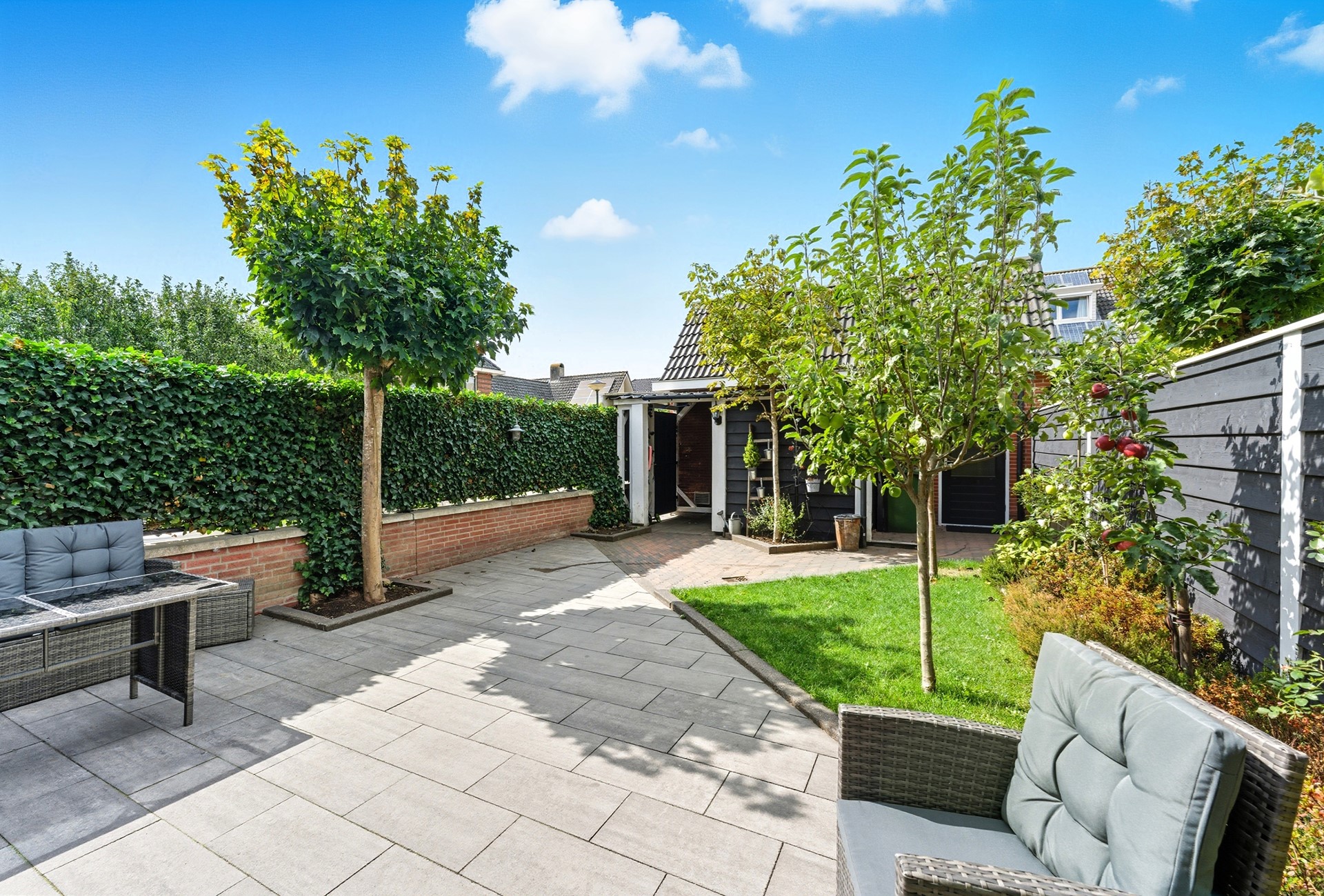 Voortuin: De verzorgde voortuin ligt op het oosten en is fraai aangelegd met een mooie bolboom en een groen gazon. Er is een handige wateraansluiting aanwezig. Boven de voordeur bevindt zich een overstek, waardoor je droog kunt staan als je bij regen je sleutels zoekt.