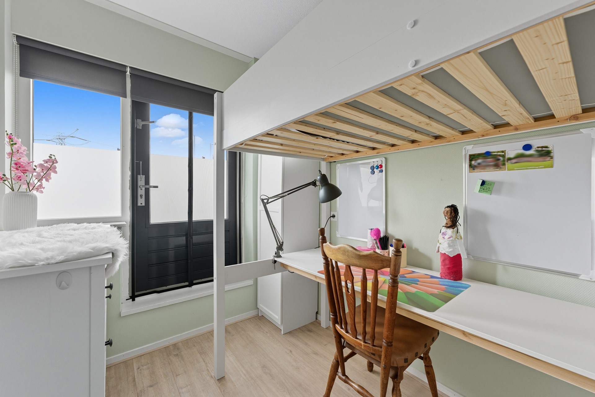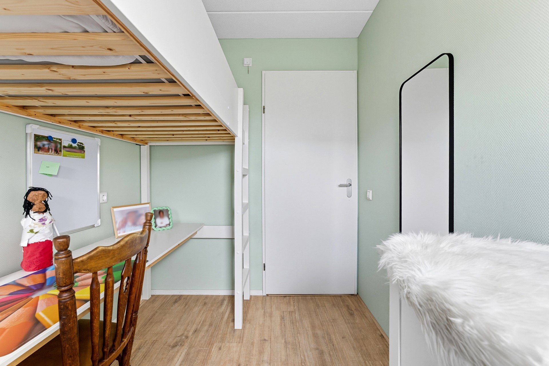 Slaapkamer 6: Ook slaapkamer 6 is een fijne kinderkamer en beschikt over een dakkapel. De kamer is afgewerkt met een laminaat vloer, glasvlies behang wanden en een gips plafond.