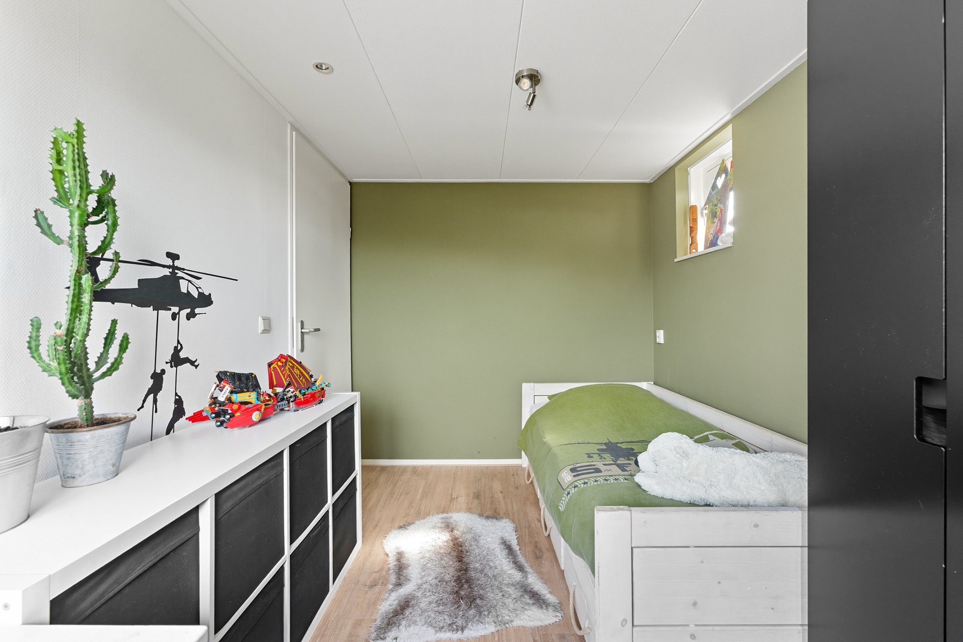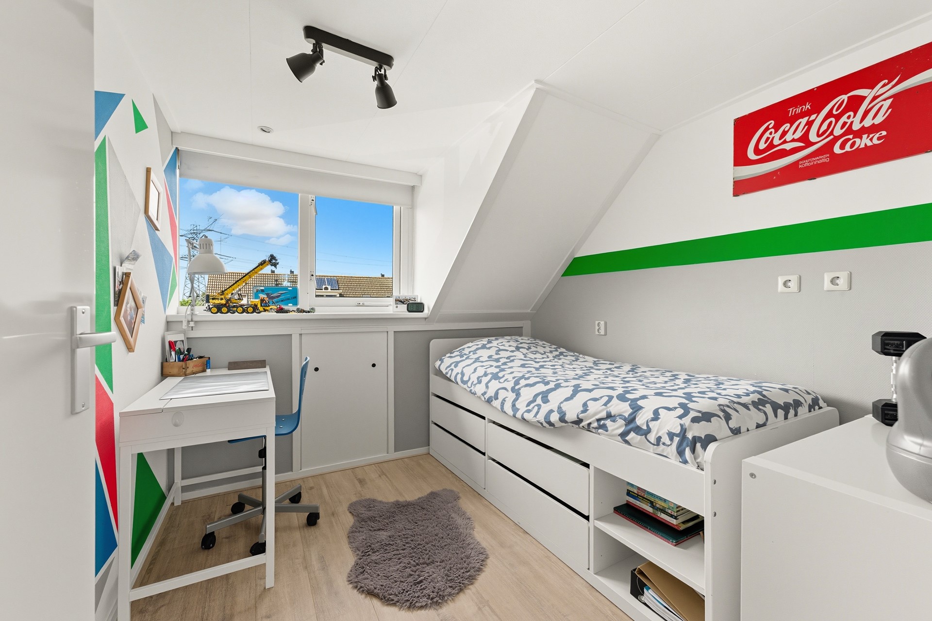 Slaapkamer 4: Deze slaapkamer ligt aan de voorzijde van de woning. De kamer beschikt over een dakraam. Er is genoeg ruimte voor een eenpersoonsbed en een kledingkast. Achter de knieschotten is opbergruimte aanwezig. De kamer is afgewerkt met een laminaat vloer, glasvlies behang wanden en een gips plafond.
