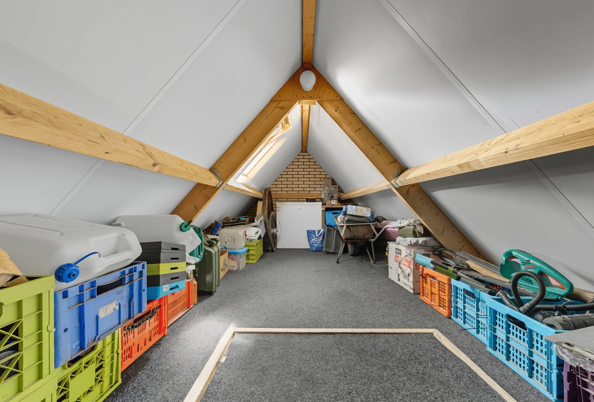 Garage: De garage is ruim en beschikt over een elektrische roldeur, wateraansluiting en verwarming. Daarnaast kan je via een vaste trap naar de zolder. Hier is ook daglicht aanwezig via een dakraam. De zolderverdieping biedt extra opslagruimte maar is ook ideaal als hobbyruimte.