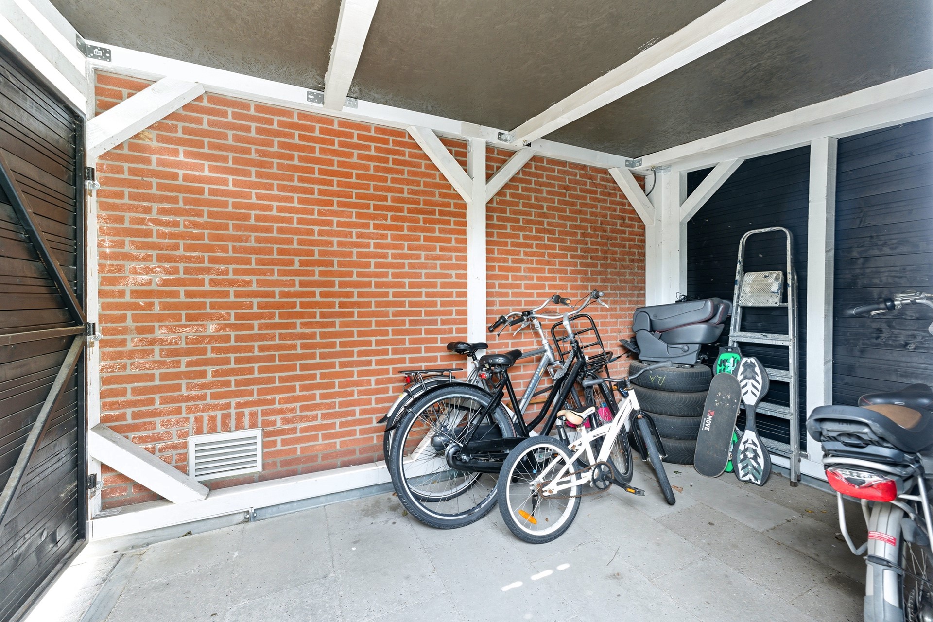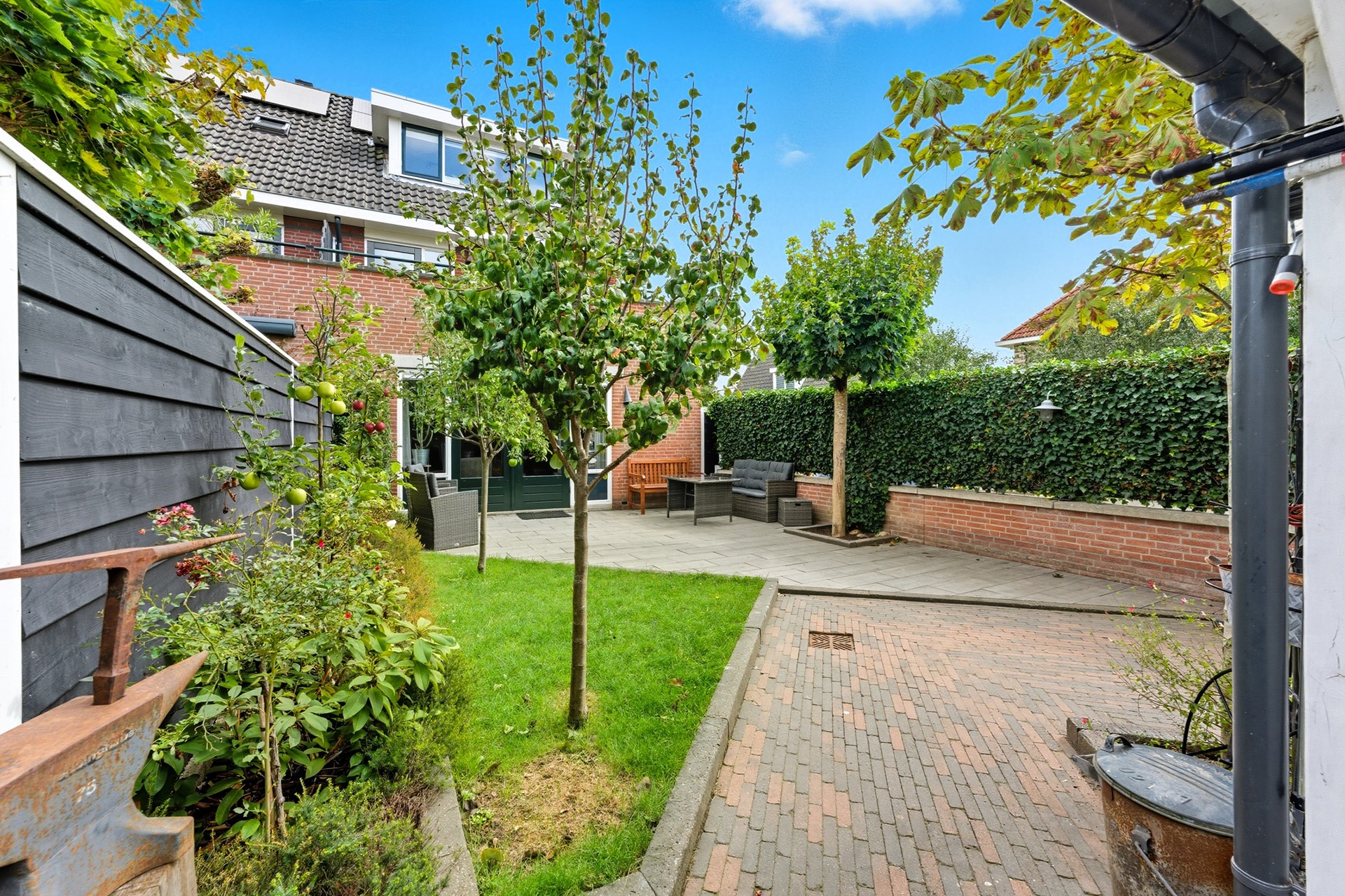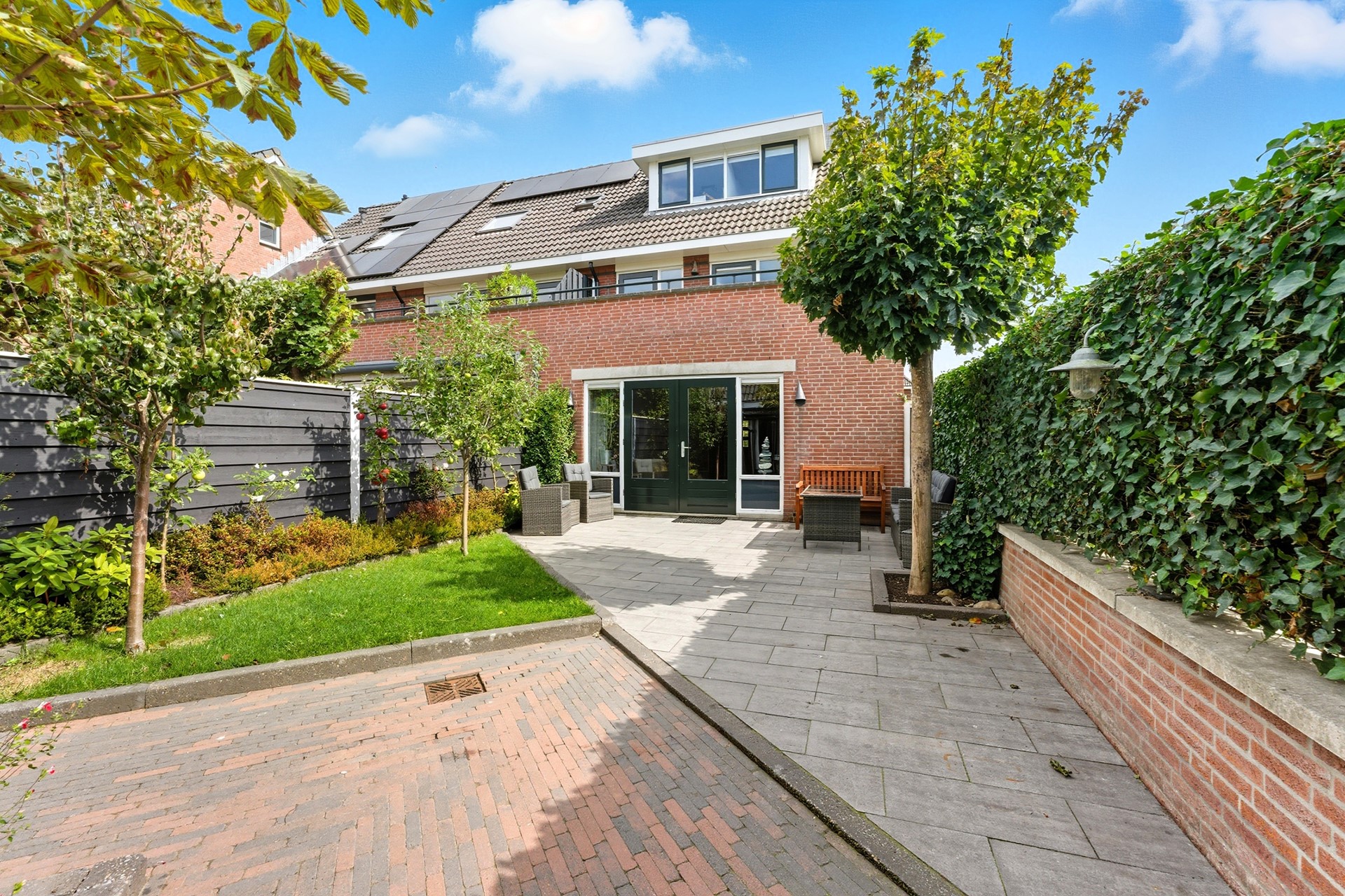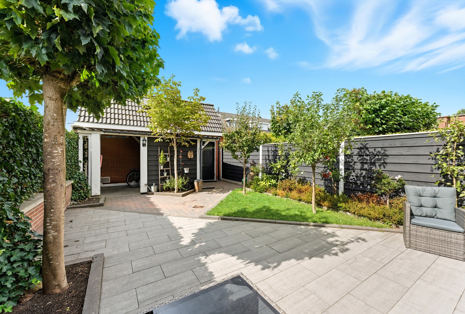 Achtertuin: De keurige achtertuin op het westen is fraai aangelegd met sierbestrating en tuinborders. De tuin is via een achterom bereikbaar. Onder de overkapping stap je direct de tuin in. De overkapping is ideaal voor het stallen van fietsen. Daarnaast is de tuin voorzien van elektra en heeft een diepte van ca. 10 meter.