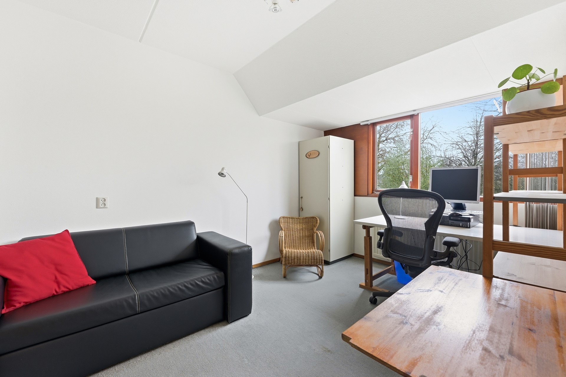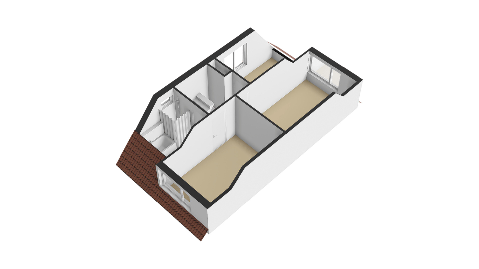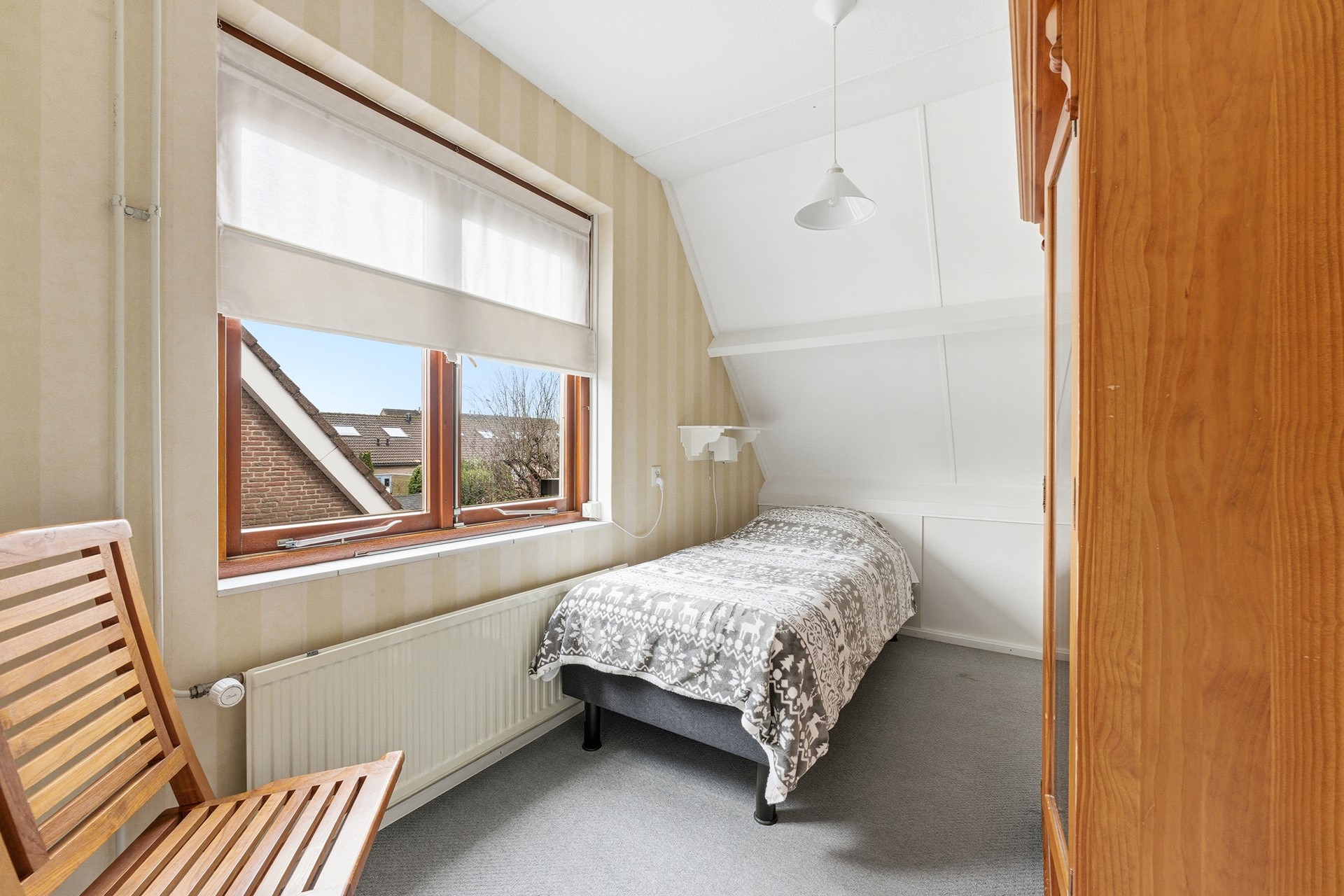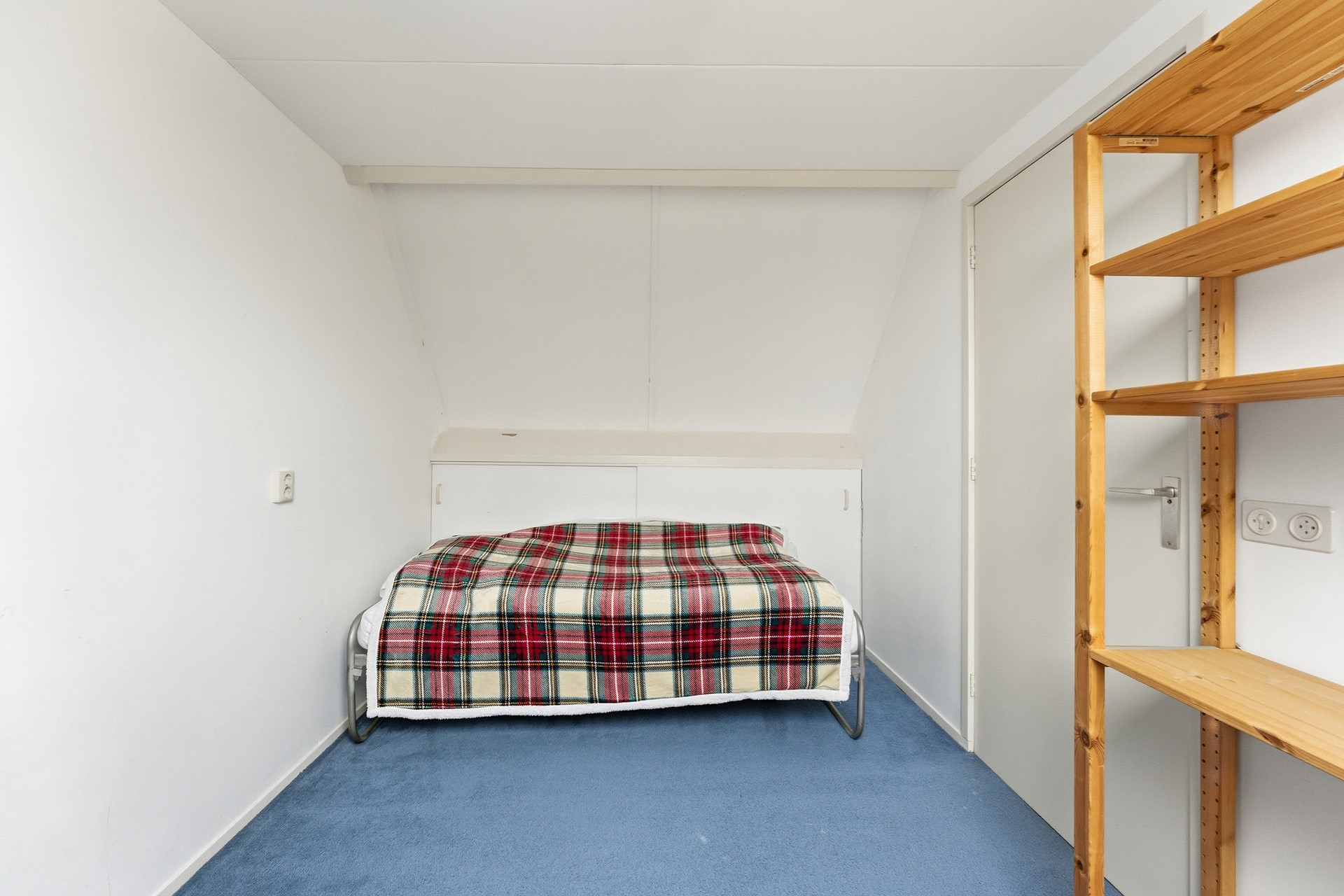 Slaapkamer 4: Slaapkamer vier ligt aan de achterzijde en is voorzien van een groot Velux dakraam, waardoor de ruimte opvallend licht is. De kamer is ideaal te gebruiken als tienerkamer, logeerkamer of werkkamer. De knieschotten zorgen voor extra bergruimte. De kamer is een prettige plek om te slapen of geconcentreerd te werken. De afwerking bestaat uit vloerbedekking, gestuukte wanden en een gipsplafond.