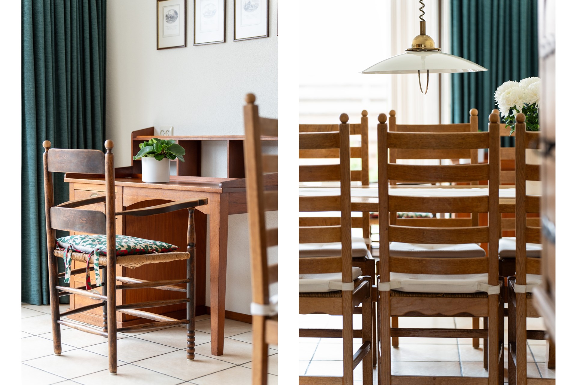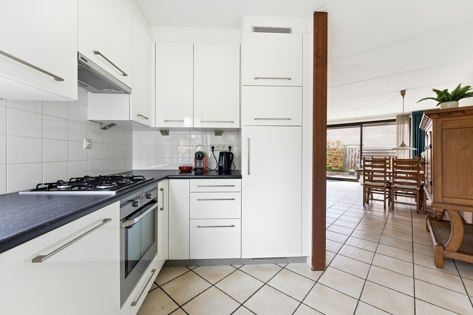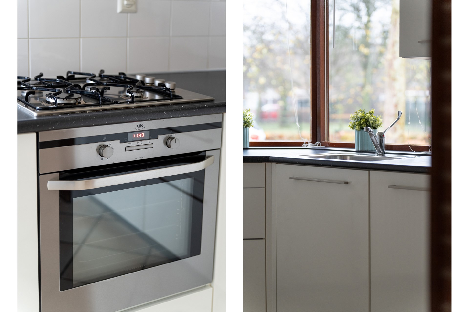Keuken: De deels open keuken bevindt zich aan de voorzijde en heeft een groot raam dat richting het hertenkamp kijkt. De keuken is voorzien van diverse apparatuur, waaronder een oven, 4-pits gasstel, afzuigkap, koel-vriescombinatie en vaatwasser. Door de open verbinding met de woonkamer blijft de ruimte prettig in gebruik.