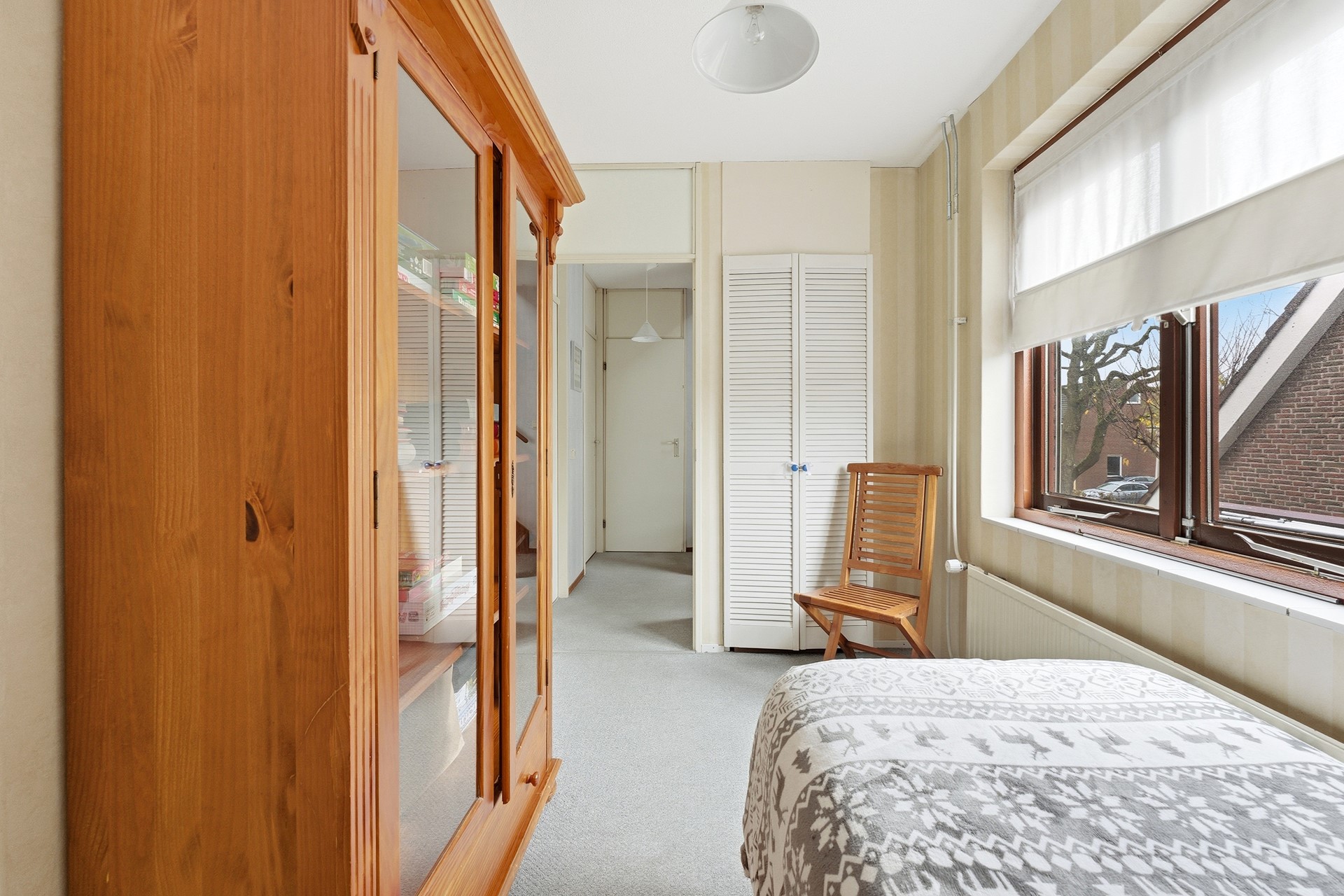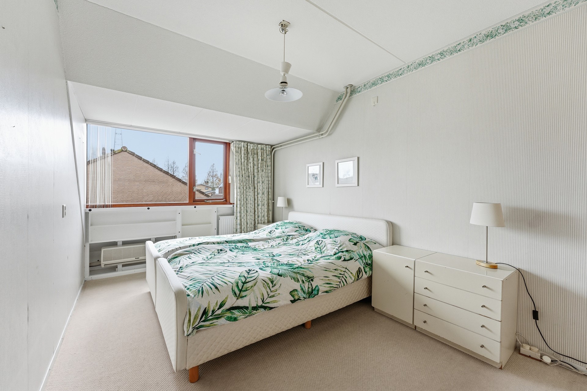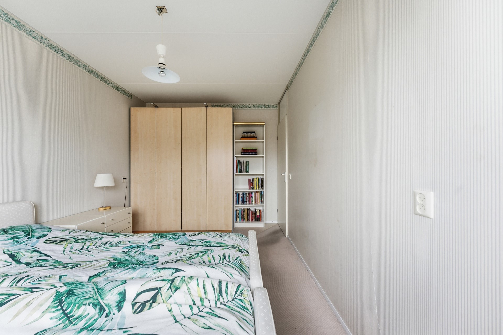 Slaapkamer 1: Slaapkamer één ligt aan de achterzijde en heeft een prettig formaat. De kamer beschikt over rolluiken, knieschotten en een inbouwkast achter louvredeurtjes. De afwerking bestaat uit vloerbedekking, behangwanden en een spuitwerk plafond.