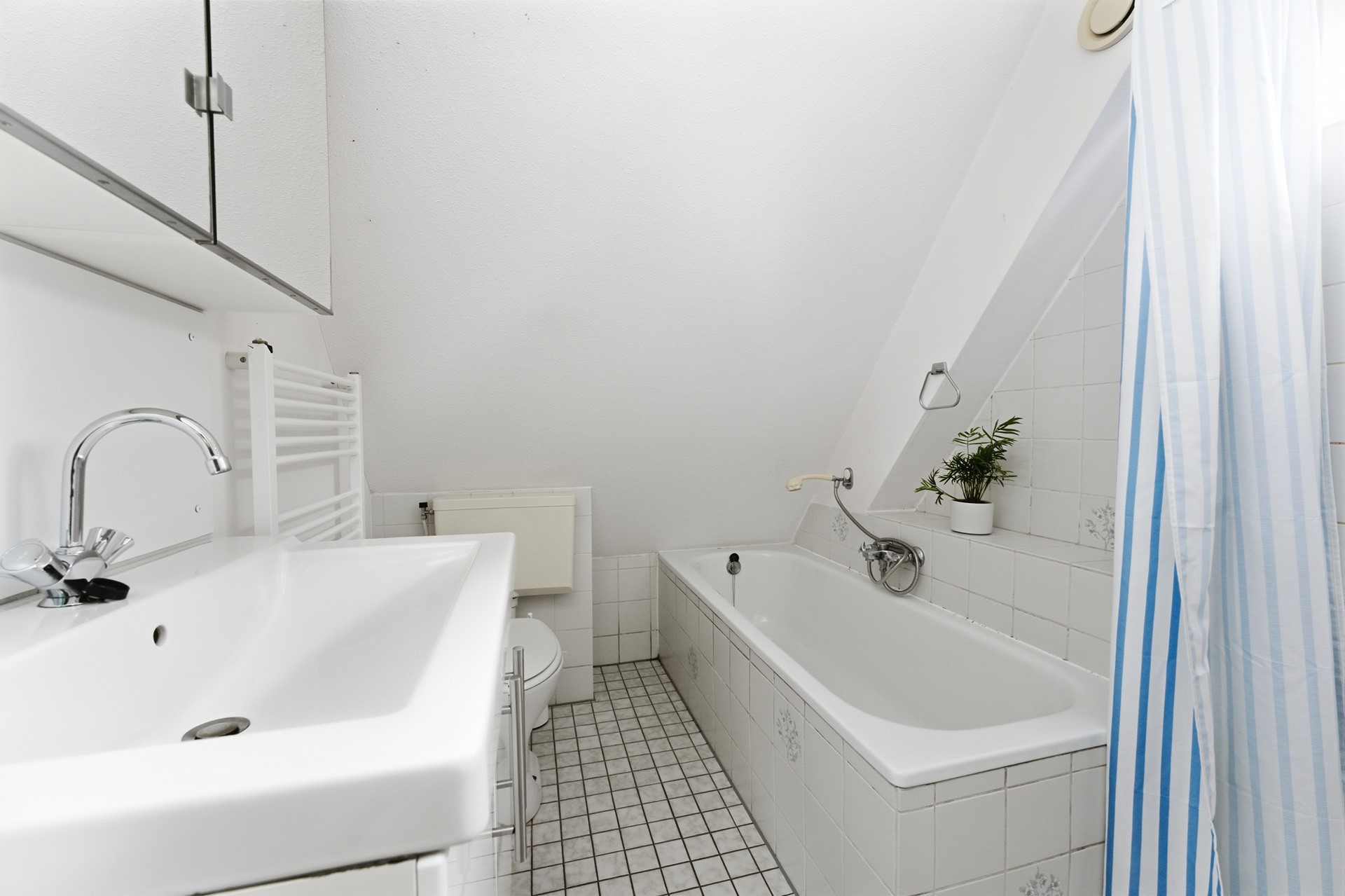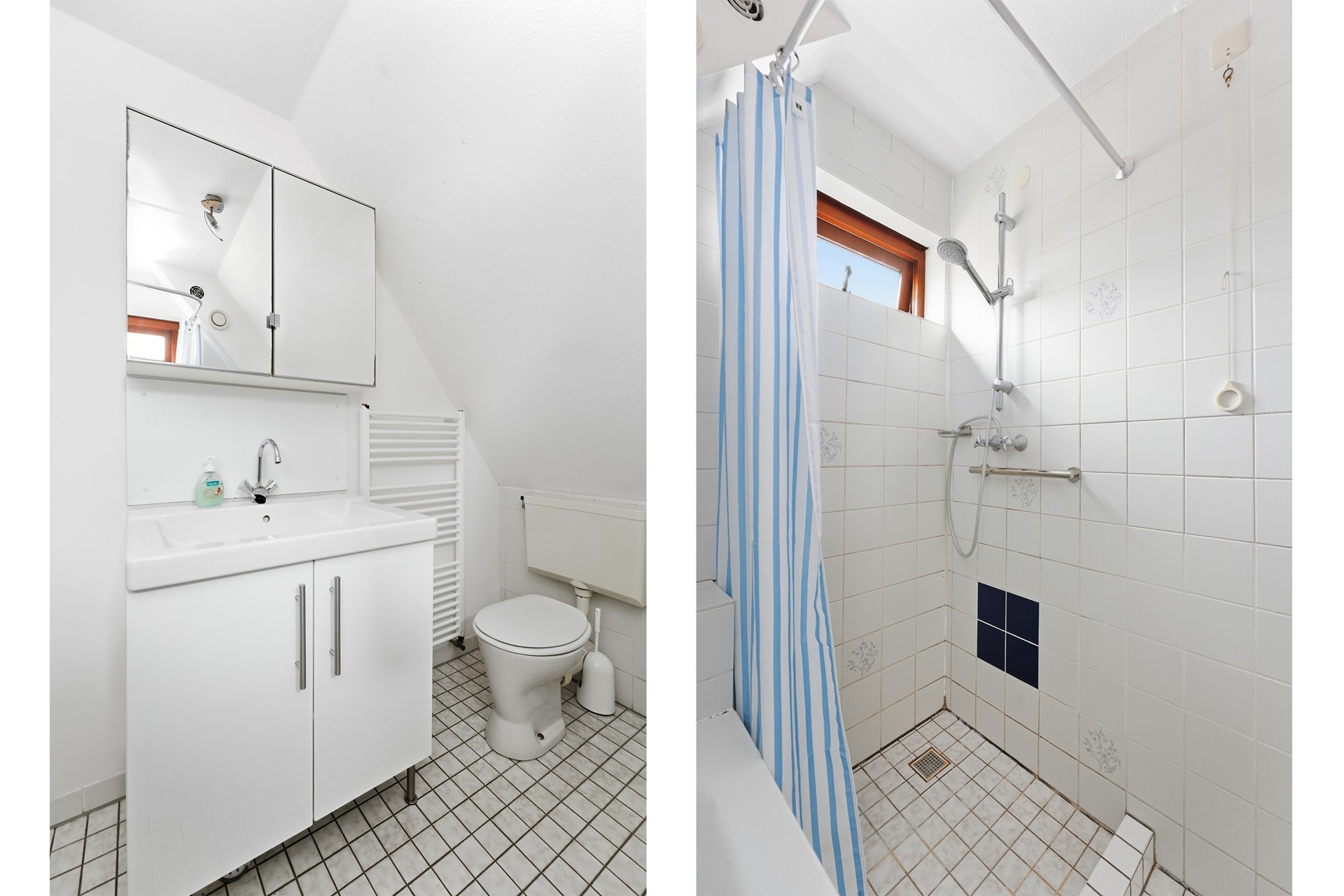 Badkamer: De badkamer is deels betegeld en voorzien van een ligbad, douche, toilet en een wastafelmeubel met geïntegreerde wastafel. Een klein raam zorgt voor natuurlijke ventilatie. De afwerking is verouderd en biedt de mogelijkheid om het naar eigen smaak aan te passen.