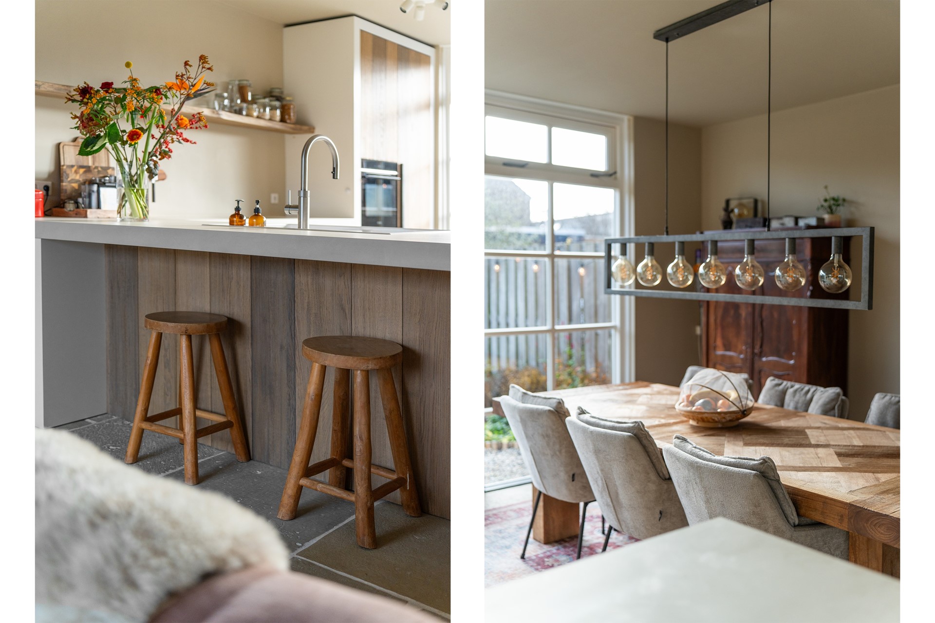 Entree: De gezellige hal biedt toegang tot de meterkast, de toiletruimte en de woonkamer. De afwerking bestaat uit een RAW STONE vloer van handgebakken klinkers/waaltjes, gestuukte wanden en een gestuukt plafond.