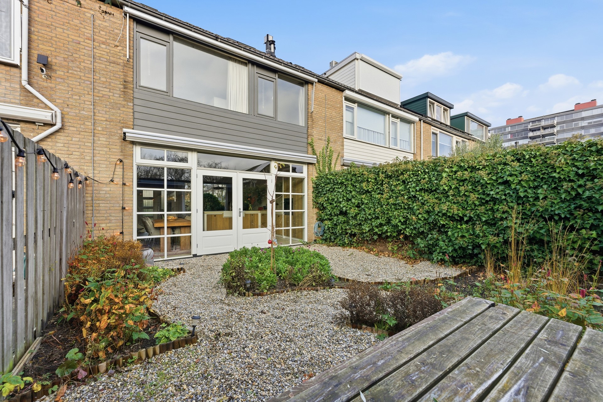 Achtertuin: De achtertuin (ca. 9,90 x 6,10 m) ligt op het zuidoosten en is ingericht met tuinborders en grind. De tuin beschikt over een elektrisch zonnescherm voor schaduw op zonnige dagen. Er is een wateraansluiting aanwezig en de stenen schuur is voorzien van buitenverlichting. De achterpui geeft de gevel een verzorgd aanzicht. Gezellige lampjes creëren hier een gezellige sfeer.