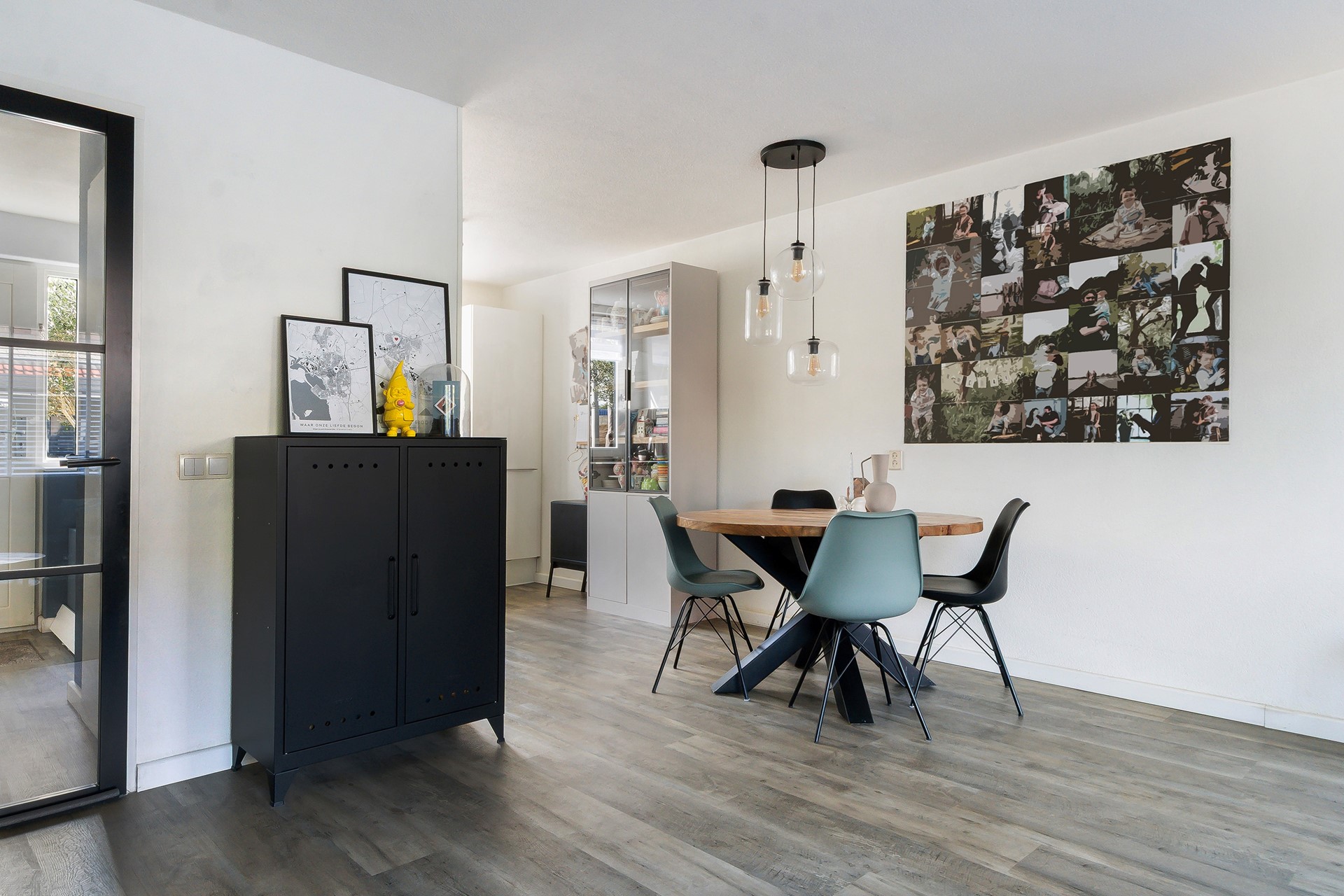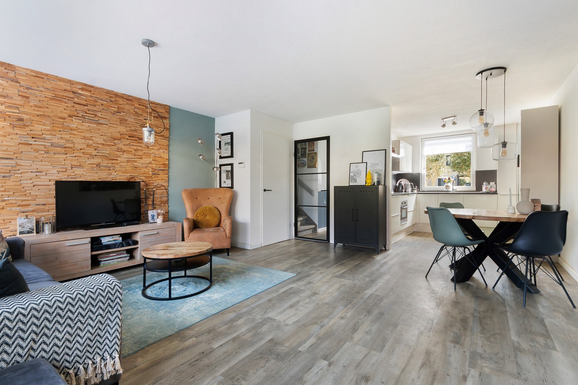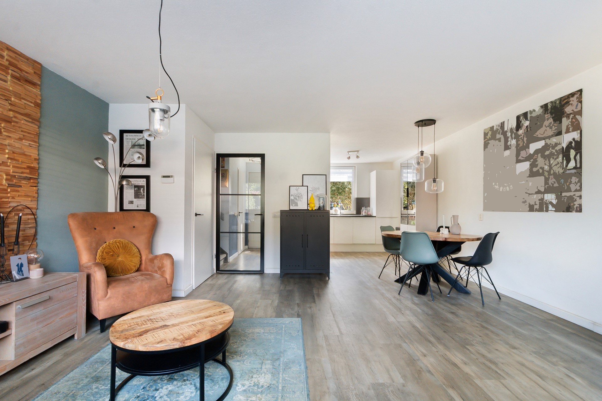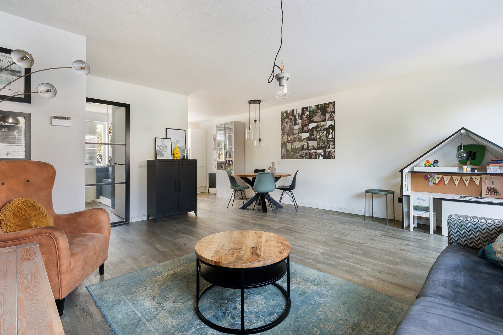 Woonkamer: De ruime en speelse woonkamer heeft directe toegang tot de achtertuin en beschikt over een praktische trapkast. Dankzij de vele raampartijen is de living bijzonder licht en ervaar je een groene, rustige sfeer door de verbinding met de tuin. De woonkamer is voorzien van vloerverwarming, wat heerlijk comfortabel is in de wintermaanden.