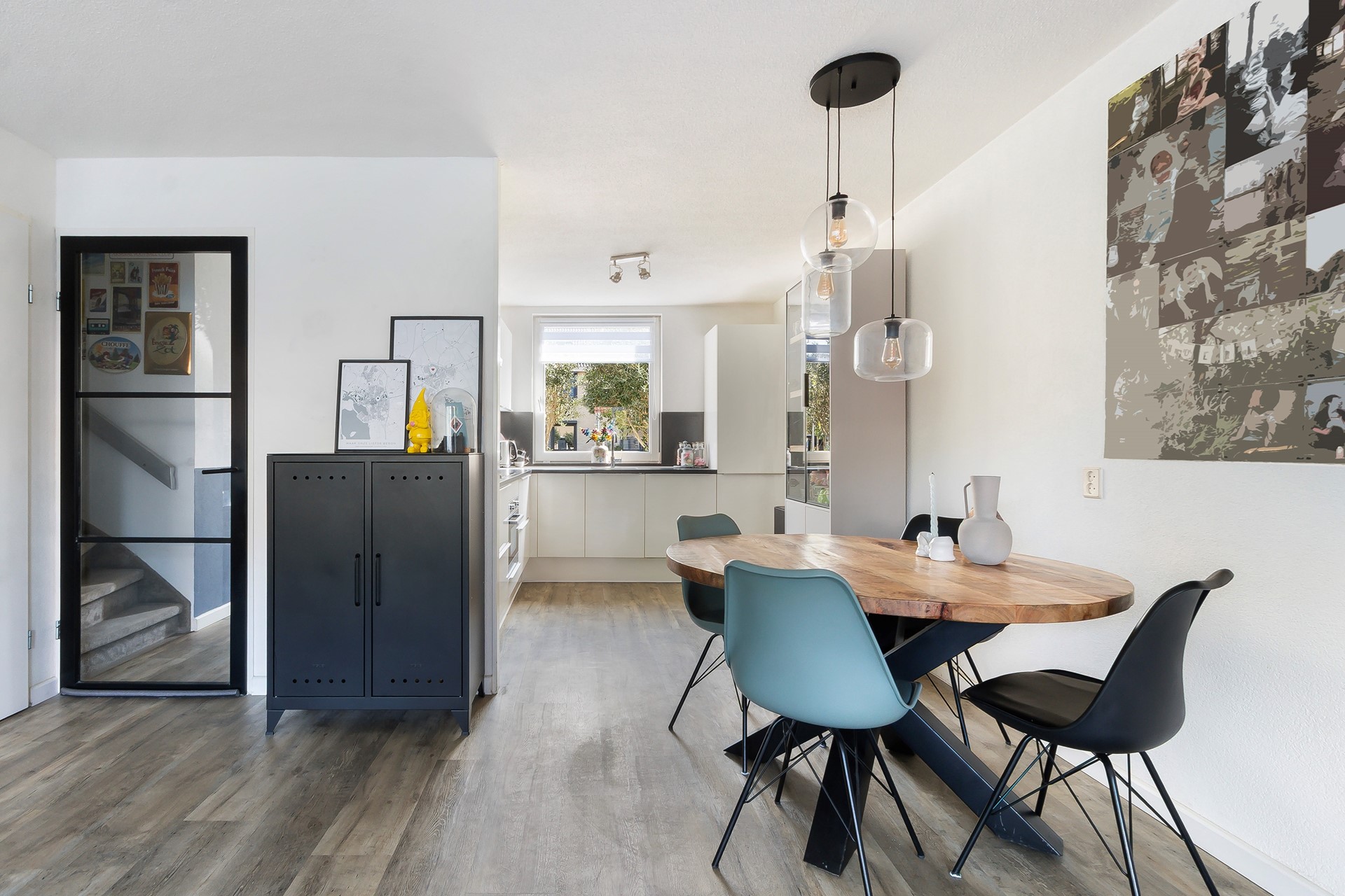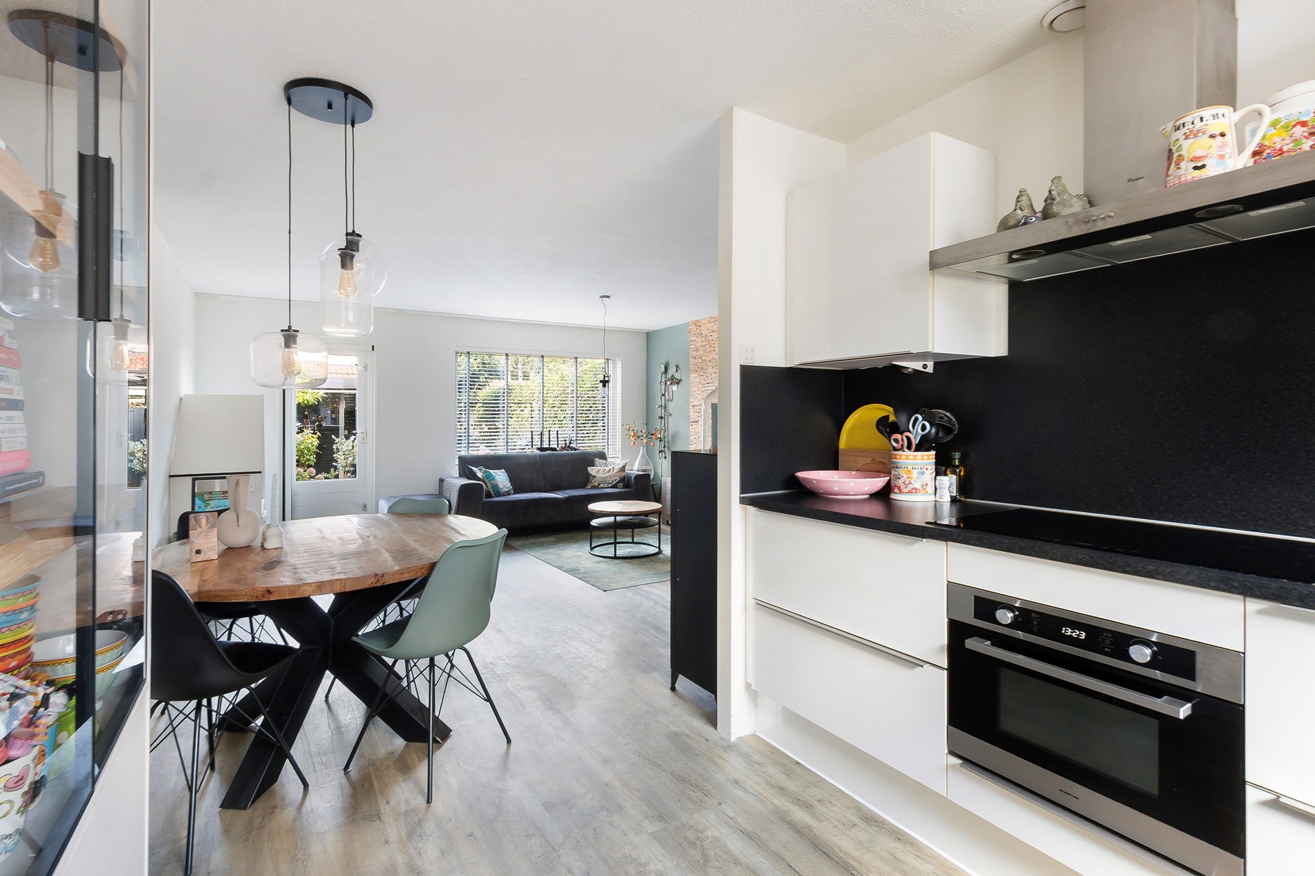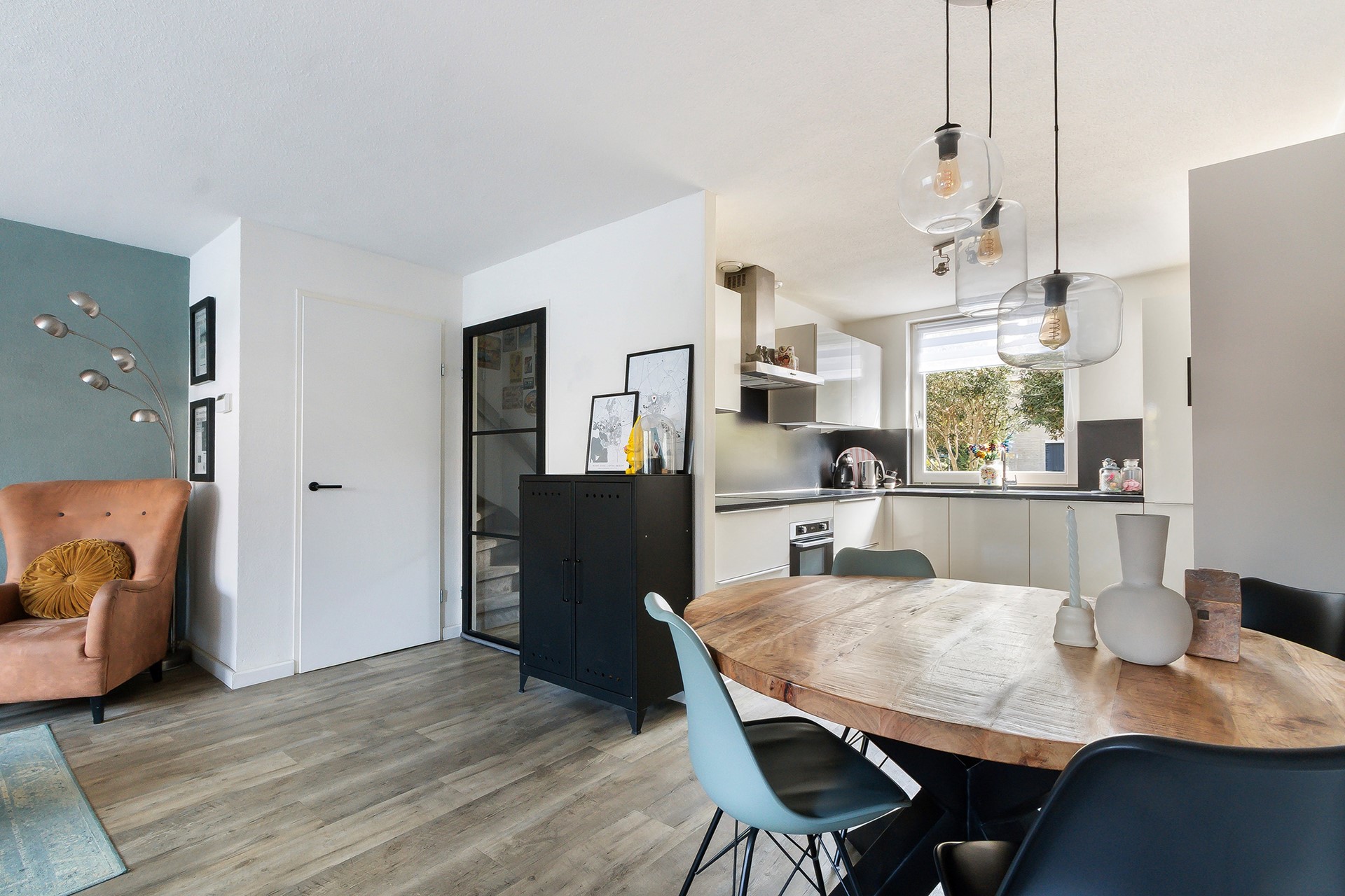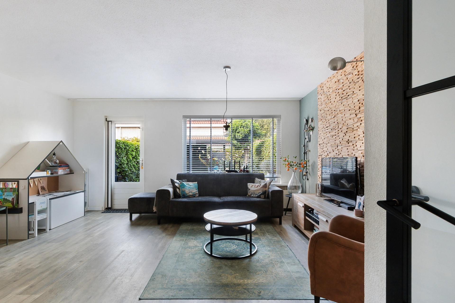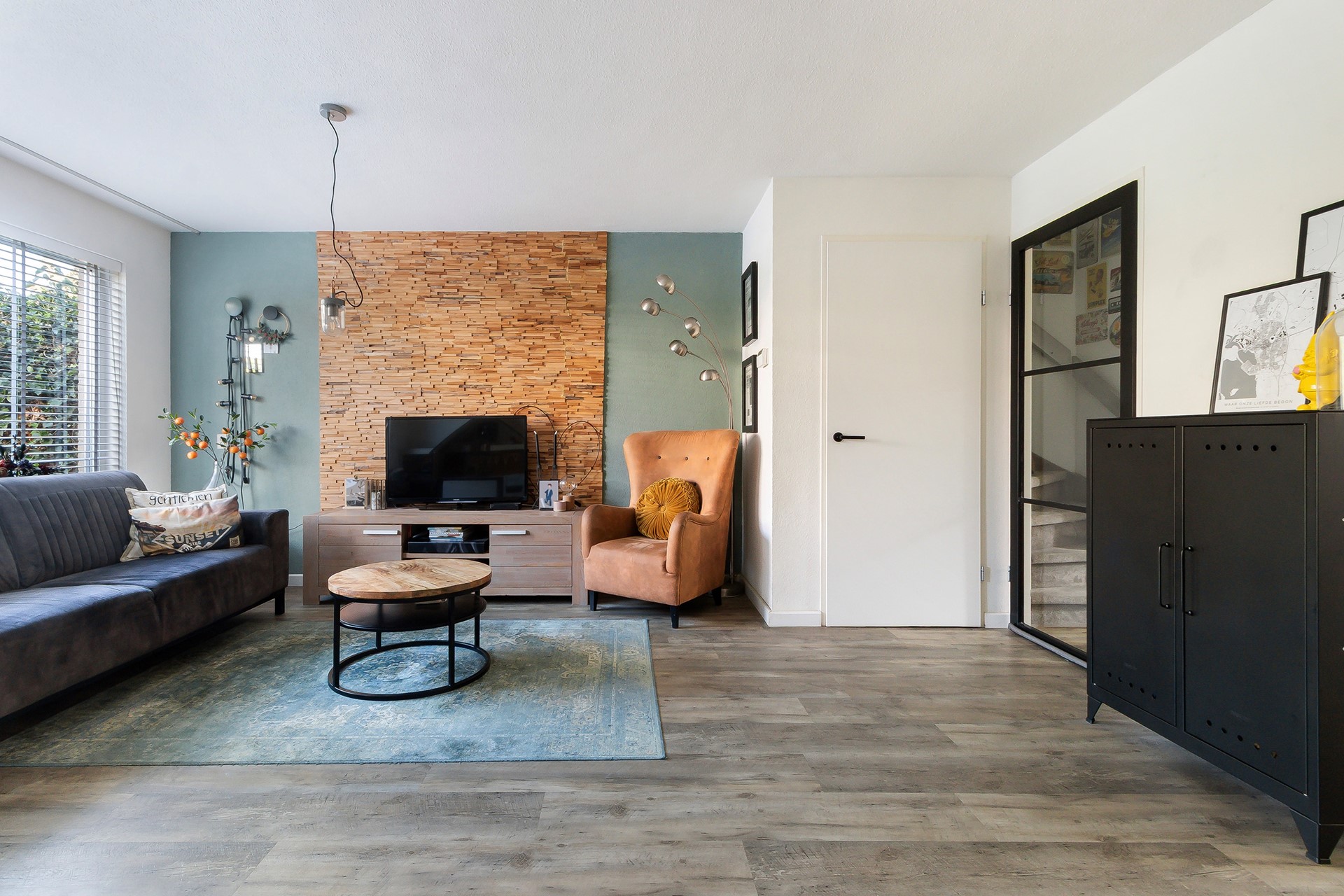 Woonkamer: De ruime en speelse woonkamer heeft directe toegang tot de achtertuin en beschikt over een praktische trapkast. Dankzij de vele raampartijen is de living bijzonder licht en ervaar je een groene, rustige sfeer door de verbinding met de tuin. De woonkamer is voorzien van vloerverwarming, wat heerlijk comfortabel is in de wintermaanden.