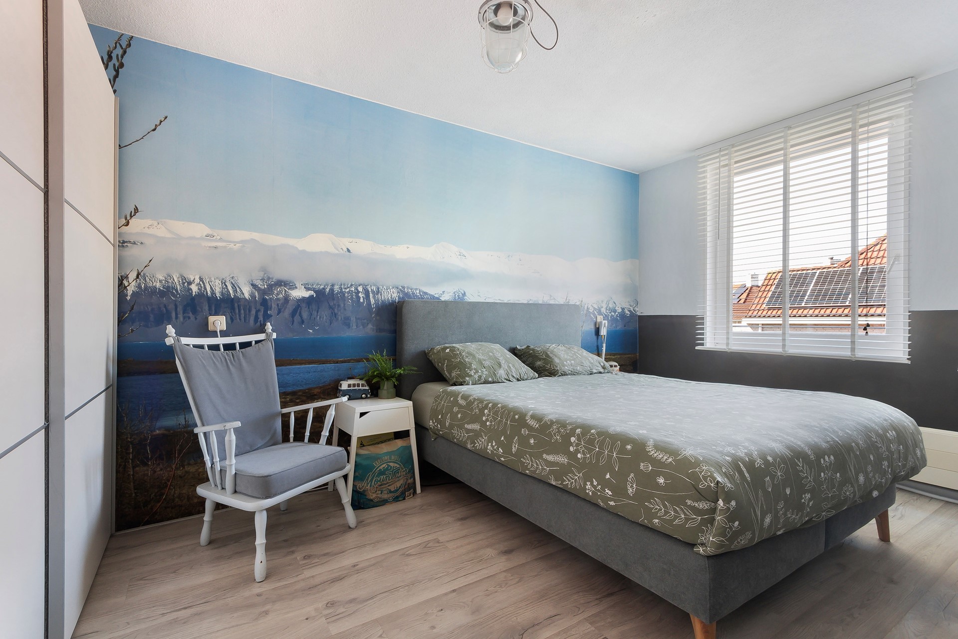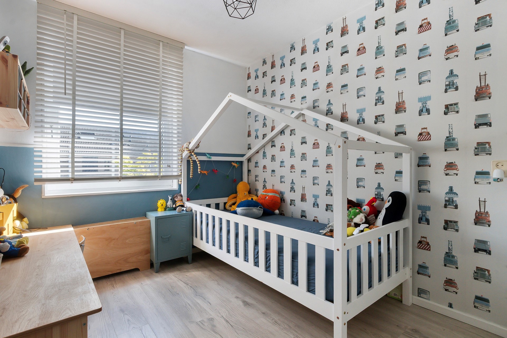 Slaapkamer 2: Slaapkamer twee ligt aan de voorzijde van de woning en is momenteel ingericht als gezellige kinderkamer. Ook hier zorgt een groot raam voor veel licht en een fijne ventilatie.
