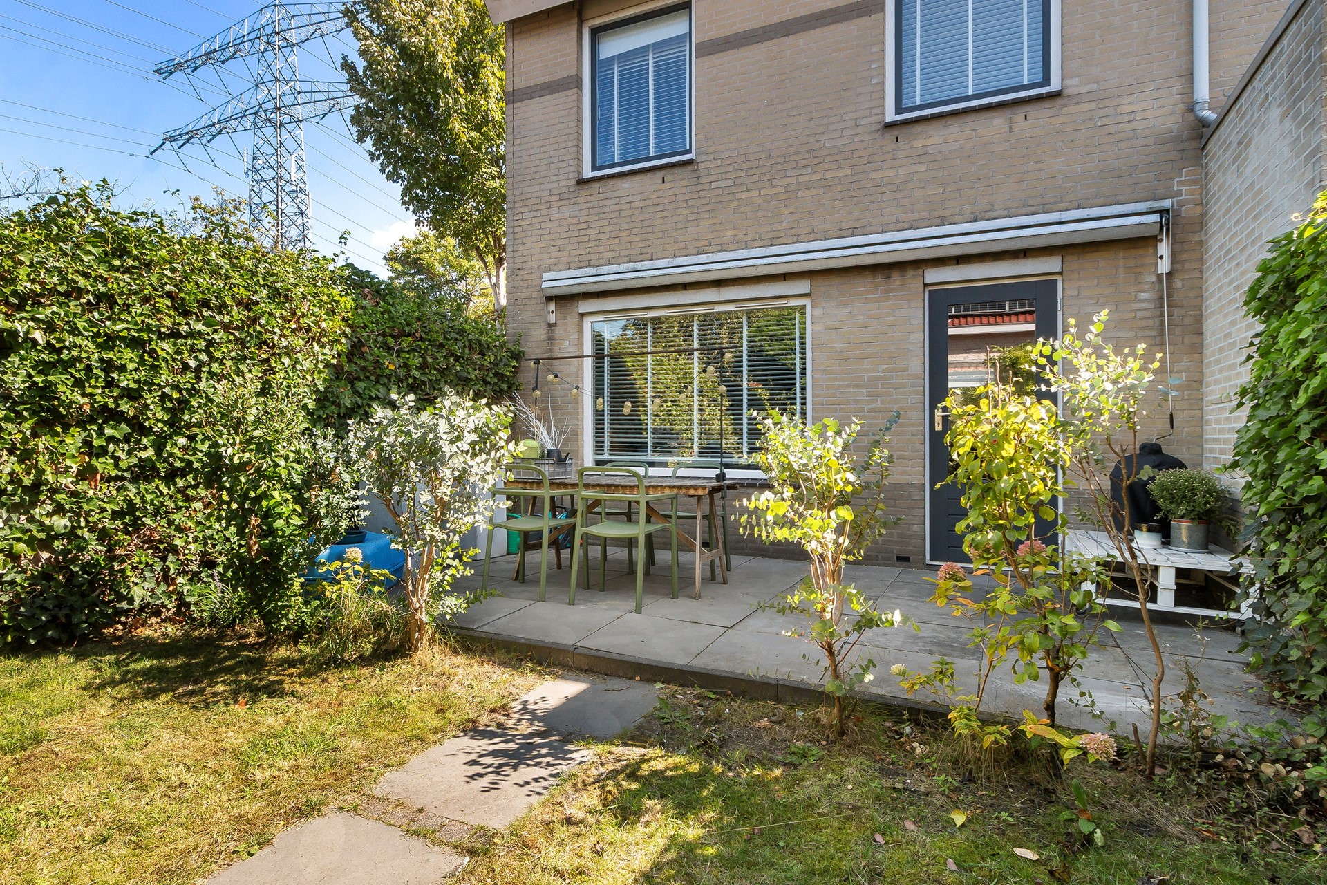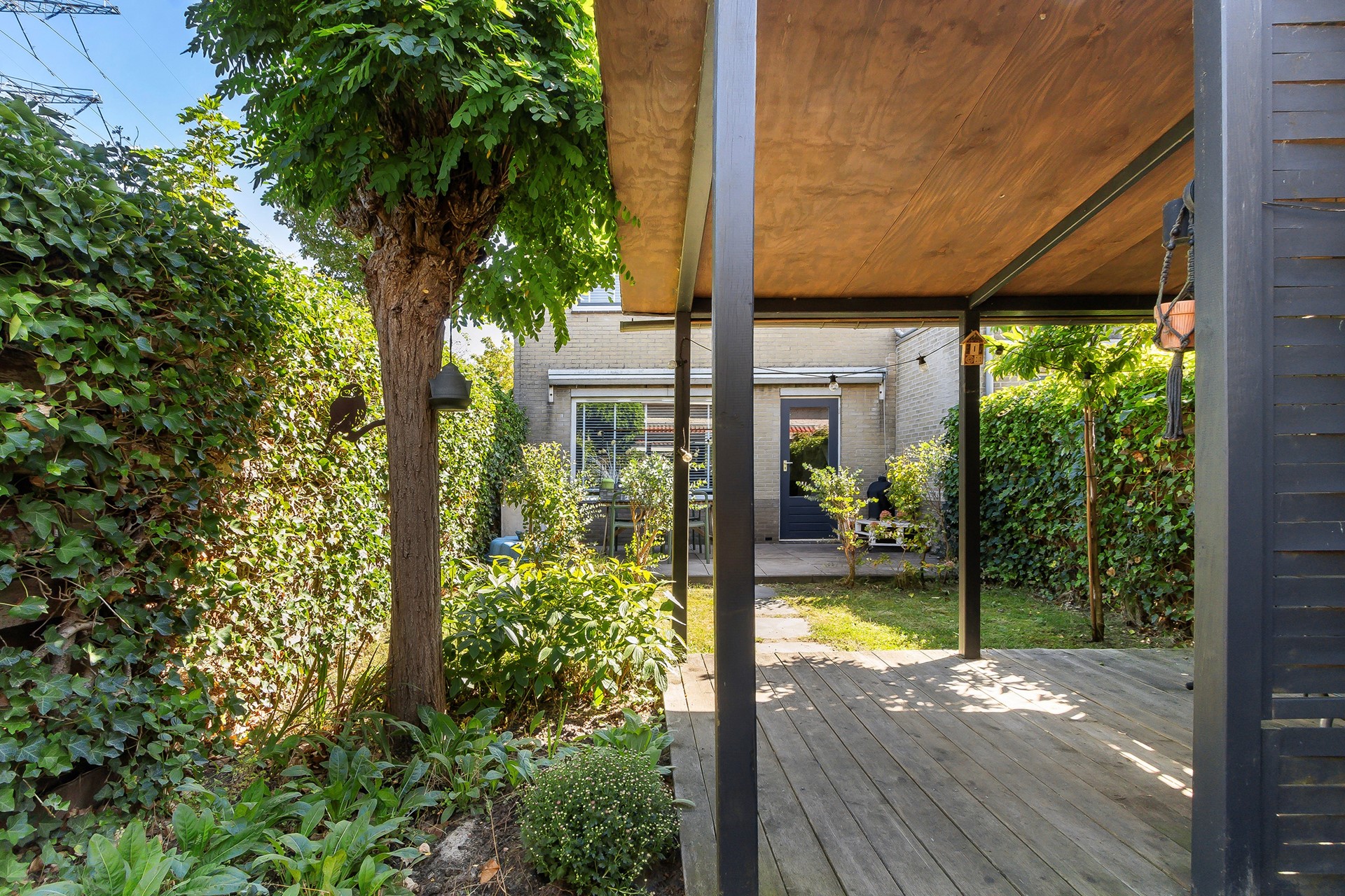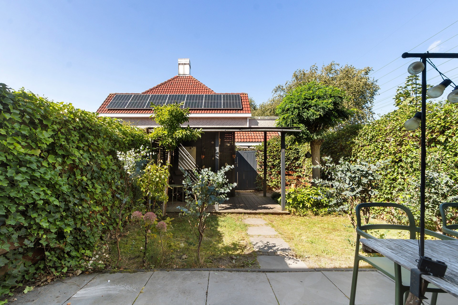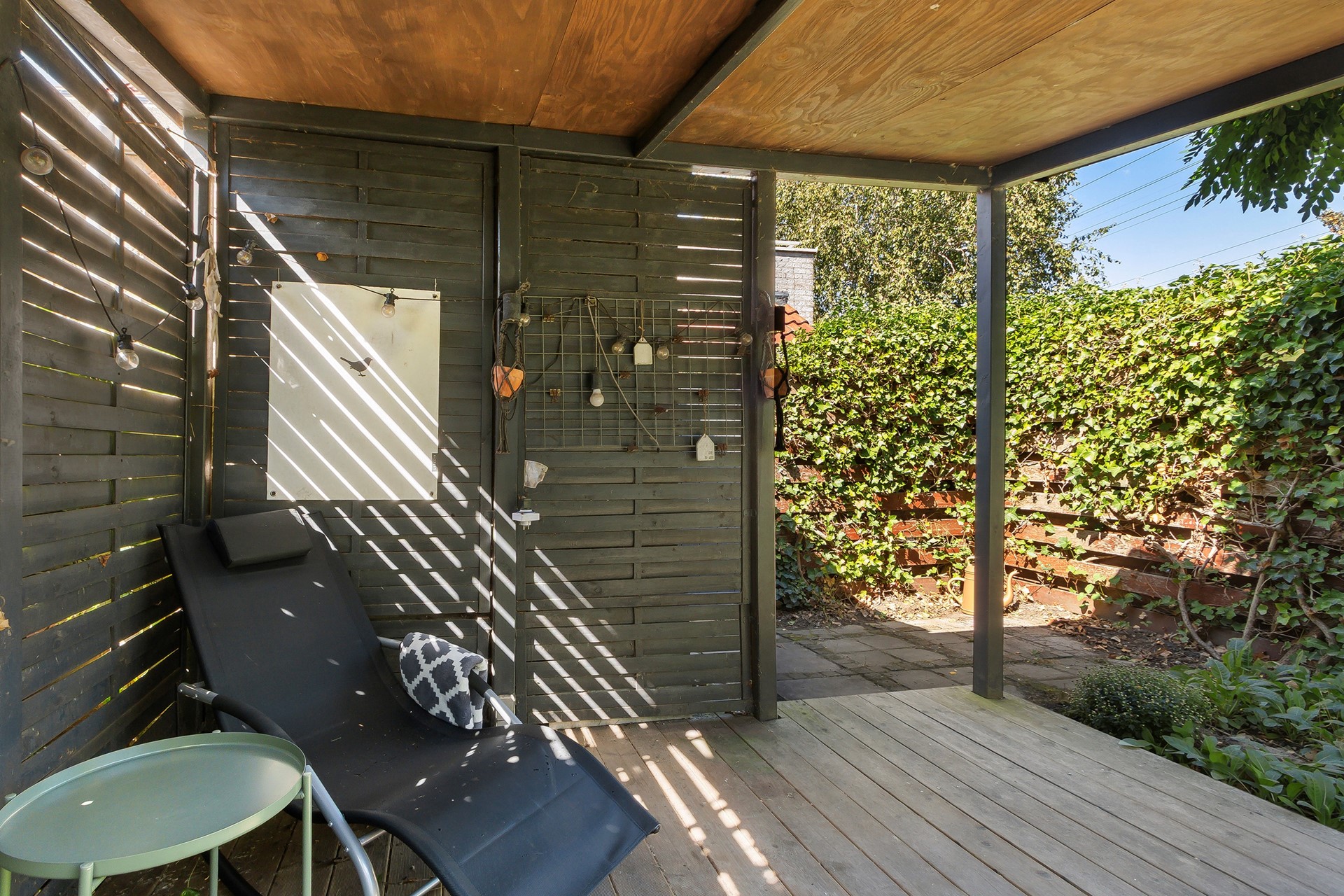 Achtertuin: De achtertuin (afm. ca. 10.30 x 5.18) is heerlijk en speels aangelegd. Je vindt er een knusse overkapping met aansluitend een berging van 4 m². Dankzij de westelijke ligging geniet je tot in de late uurtjes van de zon. De tuin is deels bestraat, maar er zijn ook diverse boompjes, gras en groenborders, waardoor de tuin een prettige, groene en natuurlijke uitstraling heeft.