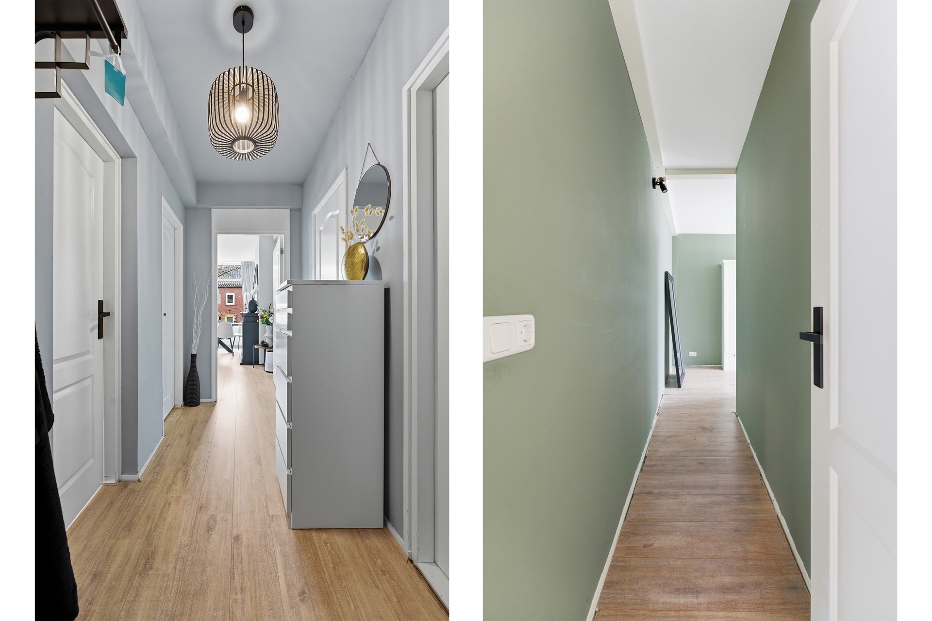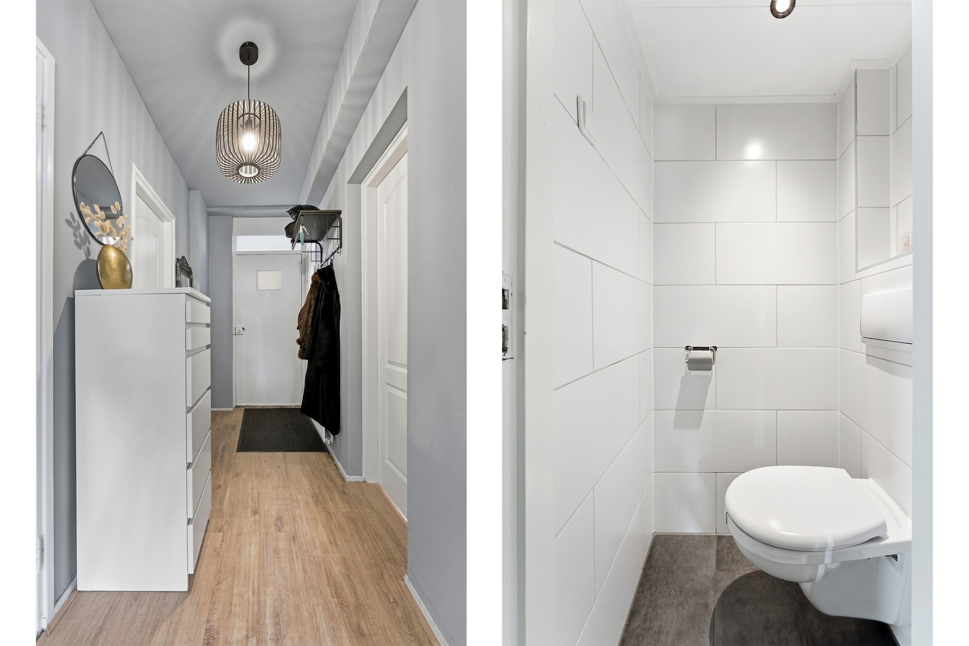 Entree: Je stapt de woning binnen in de centrale hal die direct toegang biedt tot de meterkast, de woonkamer, het toilet, de badkamer en maar liefst twee slaapkamers. Vanuit deze ontvangstruimte bereik je alle overige vertrekken in het appartement. De wanden en plafonds zijn voorzien van strak stuukwerk en op de vloer ligt een nette laminaatvloer die mooi doorloopt naar de andere ruimtes.