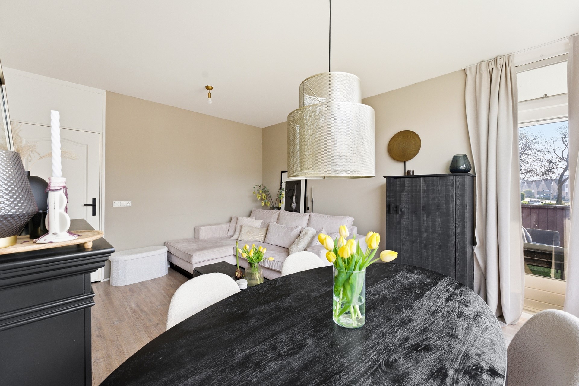 Woonkamer: In de lichte woonkamer geniet je van een vrij uitzicht over de woonomgeving. Je hebt vanuit hier toegang tot maar liefst twee balkons, waardoor je op elk moment van de dag een fijn plekje in de buitenlucht kunt opzoeken. Voor de zonnige dagen maak je eenvoudig gebruik van het aanwezige zonnescherm. De ruimte is afgewerkt met gestuukte wanden en een laminaatvloer.