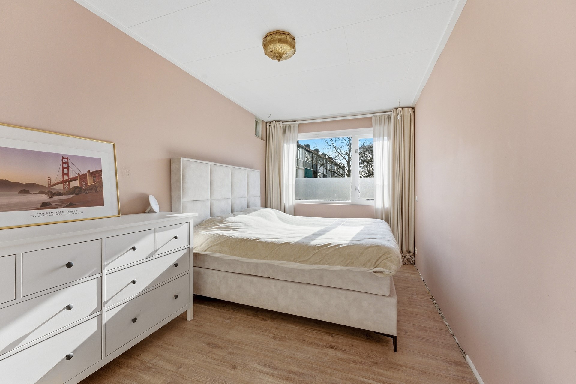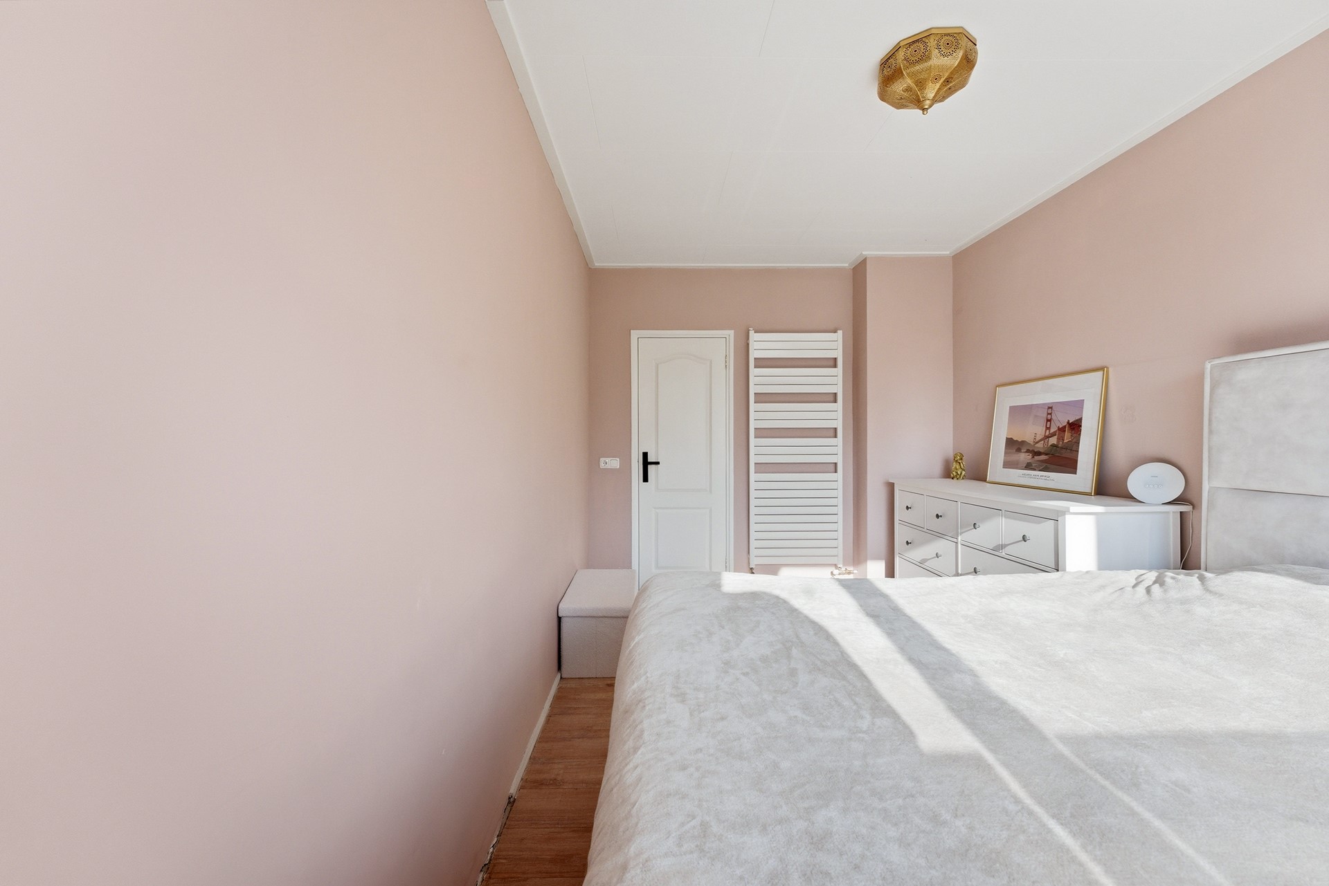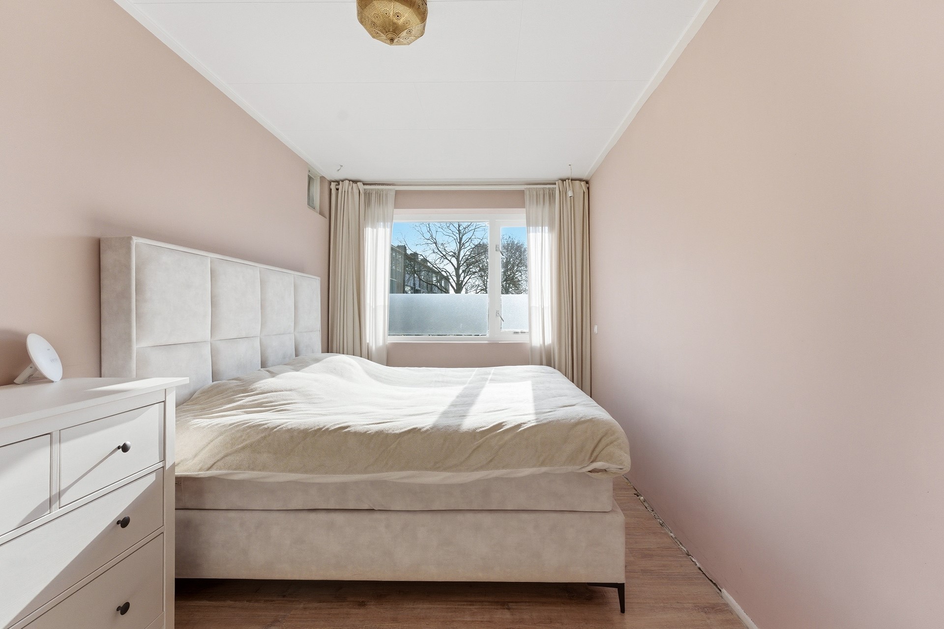 Slaapkamer 1: Deze ruime slaapkamer ligt aan de rustige zijkant van het appartement. De kamer bied je volop ruimte voor een groot bed en is voorzien van een moderne designradiator. De ruimte is afgewerkt met een laminaatvloer, gestuukte wanden en een delenplafond.