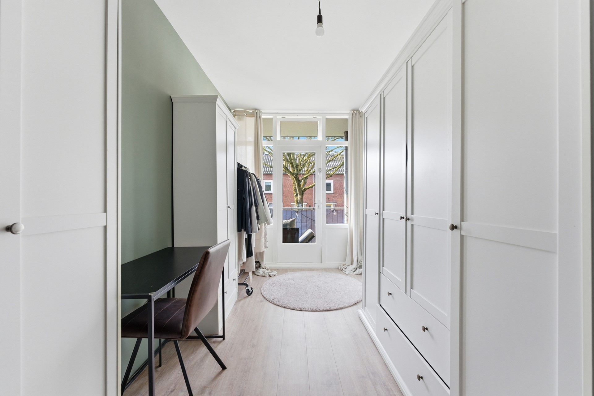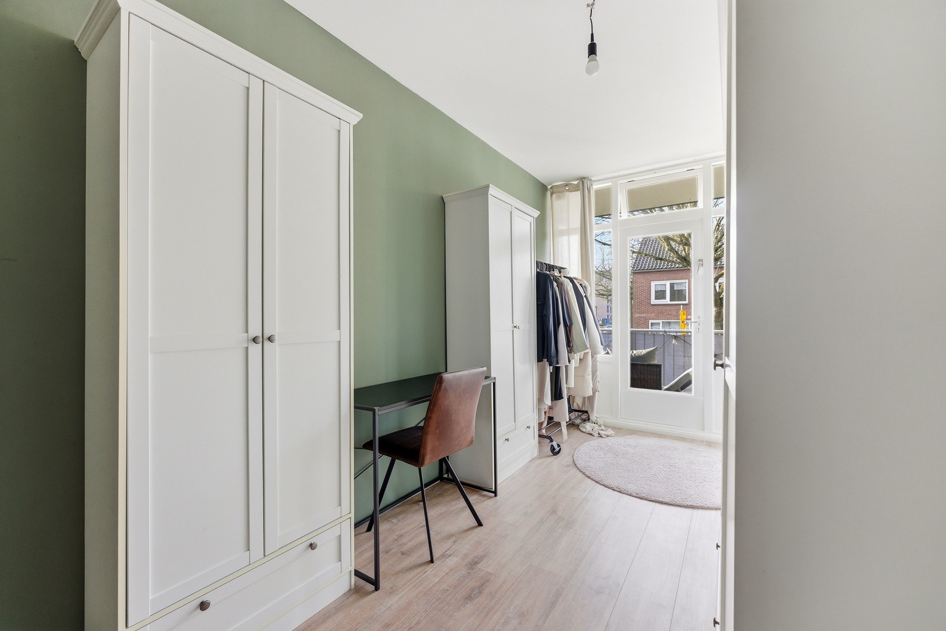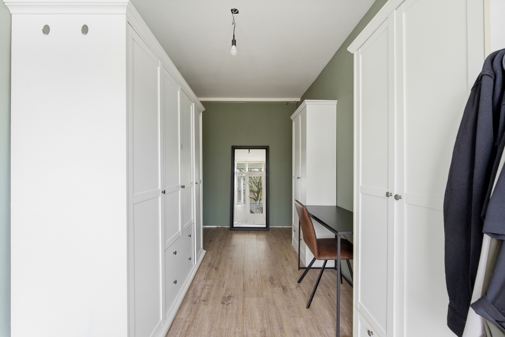 Slaapkamer 1: Deze ruime slaapkamer ligt aan de rustige zijkant van het appartement. De kamer bied je volop ruimte voor een groot bed en is voorzien van een moderne designradiator. De ruimte is afgewerkt met een laminaatvloer, gestuukte wanden en een delenplafond.