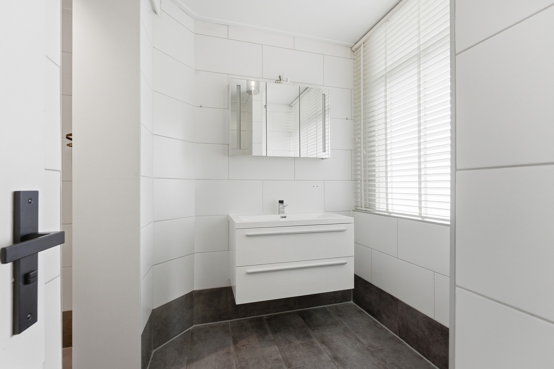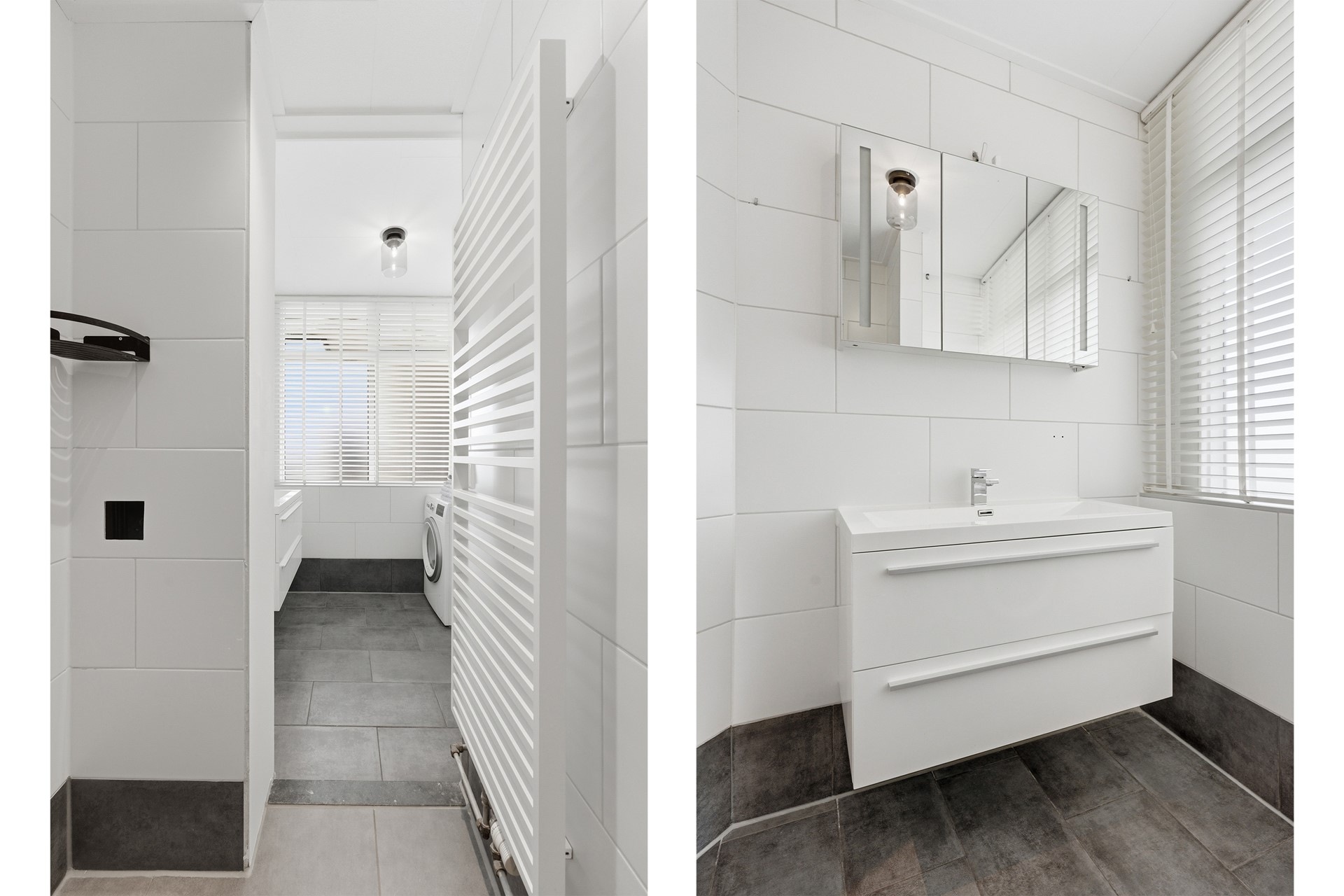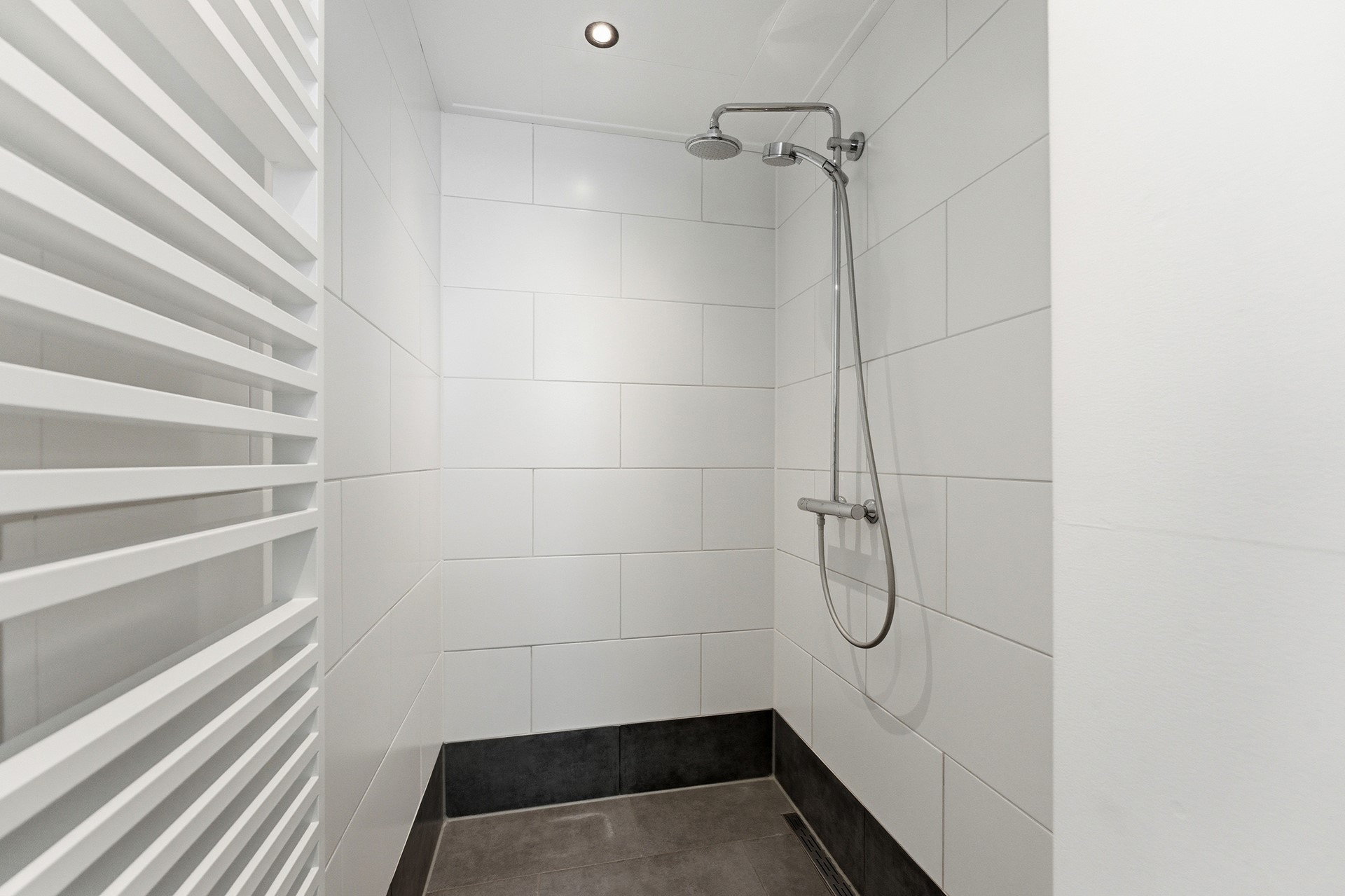 Badkamer: De badkamer is neutraal van kleur en biedt een royale inloopdouche, waar je heerlijk kunt ontspannen. Je vindt hier een wastafelmeubel en ook de aansluiting voor je wasmachine is in deze ruimte aanwezig. De ruimte is toegankelijk via een fraaie houten paneeldeur en is volledig betegeld afgewerkt.