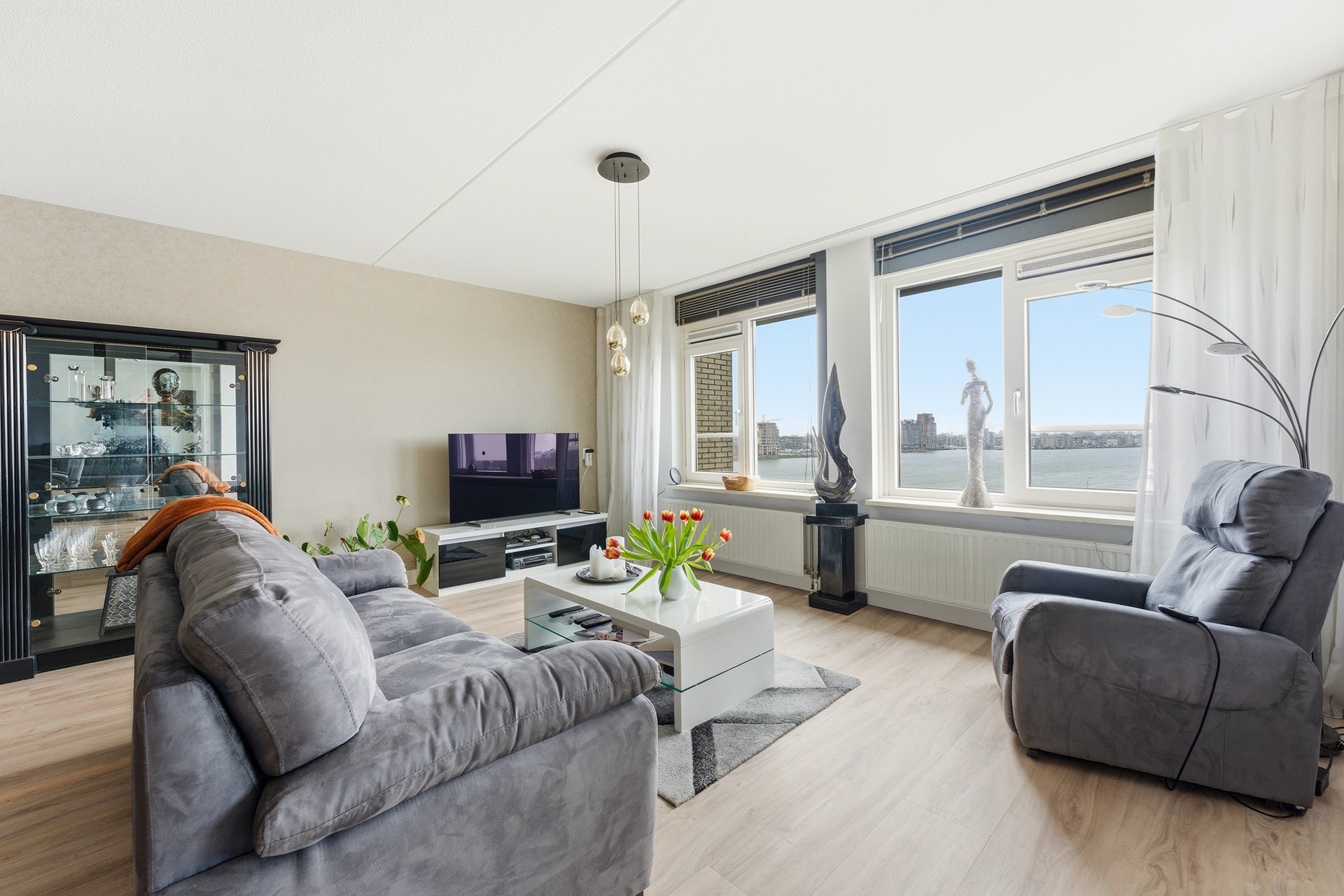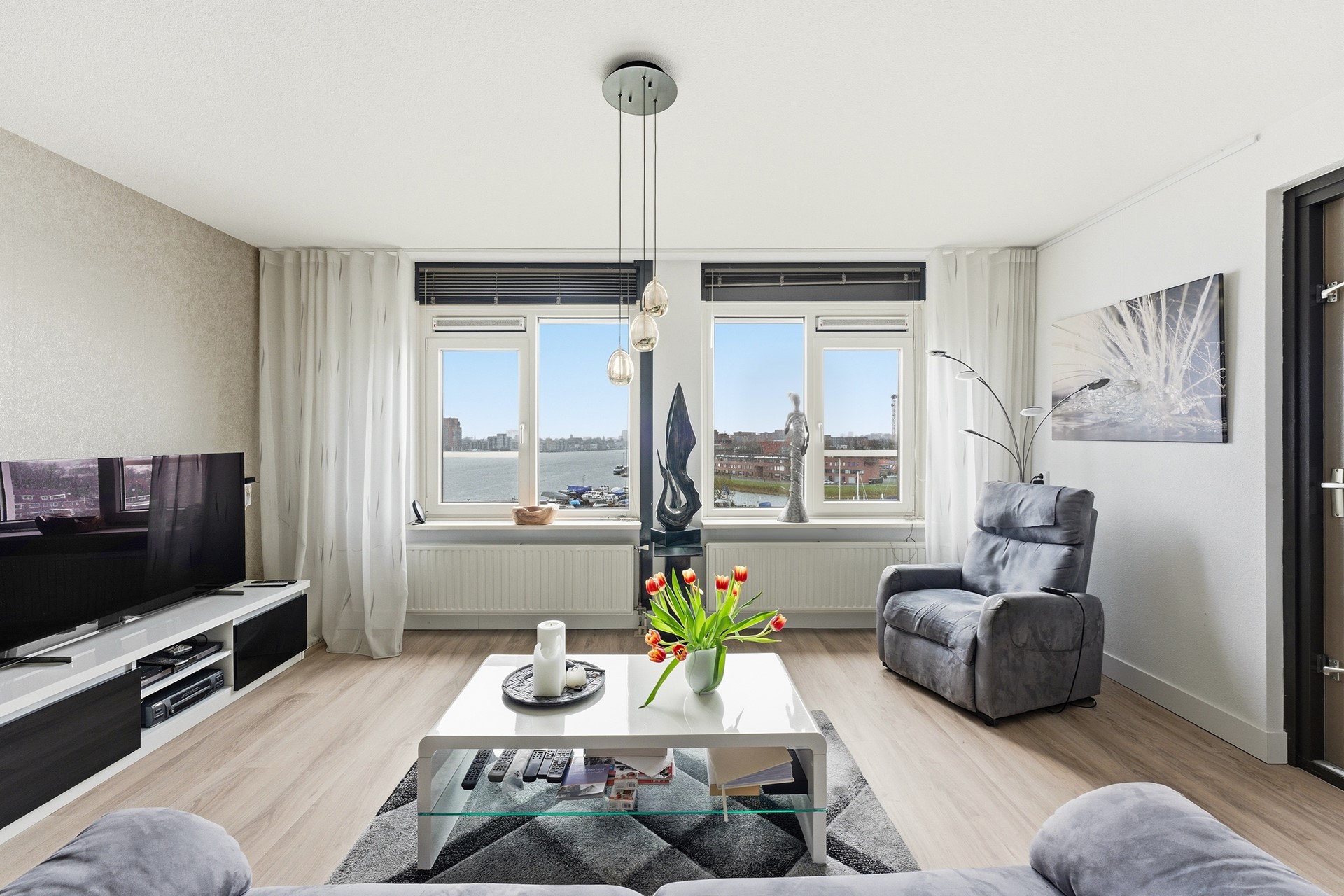 Dit ruime appartement biedt u een adembenemend uitzicht over de rivier Beneden Merwede en de skyline van Dordrecht, Zwijndrecht en bij helder weer zelfs Rotterdam. De lichte en royale woonkamer vormt het hart van de woning en geeft via grote ramen direct toegang tot de loggia op het westen. De open keuken in hoekopstelling is eigentijds uitgevoerd en voorzien van moderne inbouwapparatuur, waardoor u met veel gemak een maaltijd op tafel zet. Het appartement beschikt over twee comfortabele slaapkamers en een moderne badkamer met inloopdouche, wastafelmeubel en aansluiting voor wasmachine en droger. Daarnaast beschikt u over een eigen berging in het complex en is er voldoende parkeergelegenheid voor de deur. De combinatie van de praktische indeling en het uitzicht over het water maakt dit appartement een comfortabele en instapklare plek voor uw nieuwe thuis.
