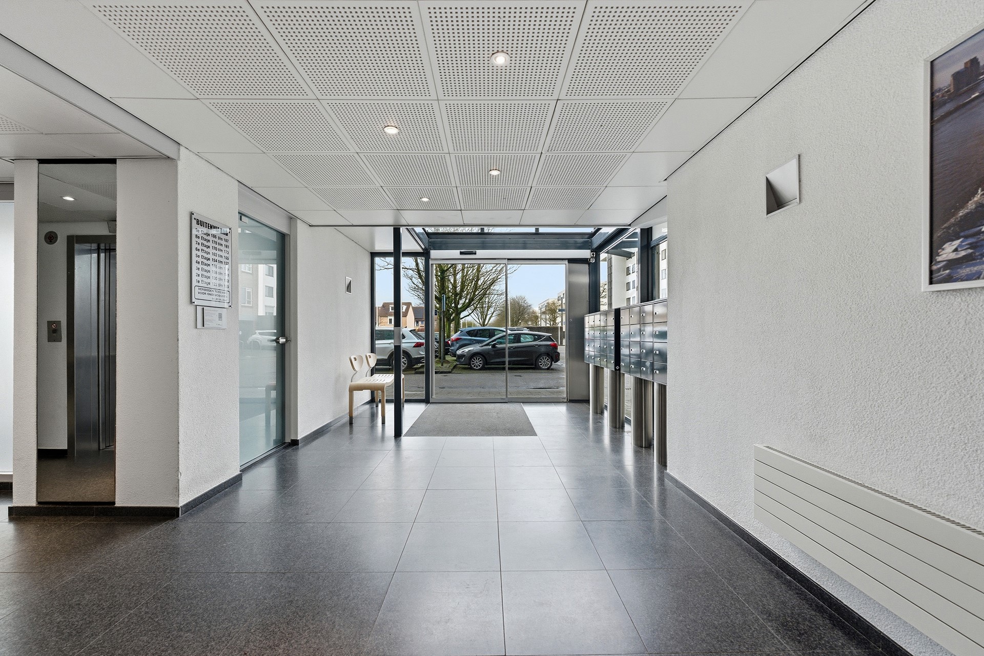 U betreedt het appartementencomplex via de centrale entree met intercomsysteem en brievenbussen. Vanuit hier bereikt u via de trap of de lift moeiteloos de zesde verdieping van dit verzorgde complex.
