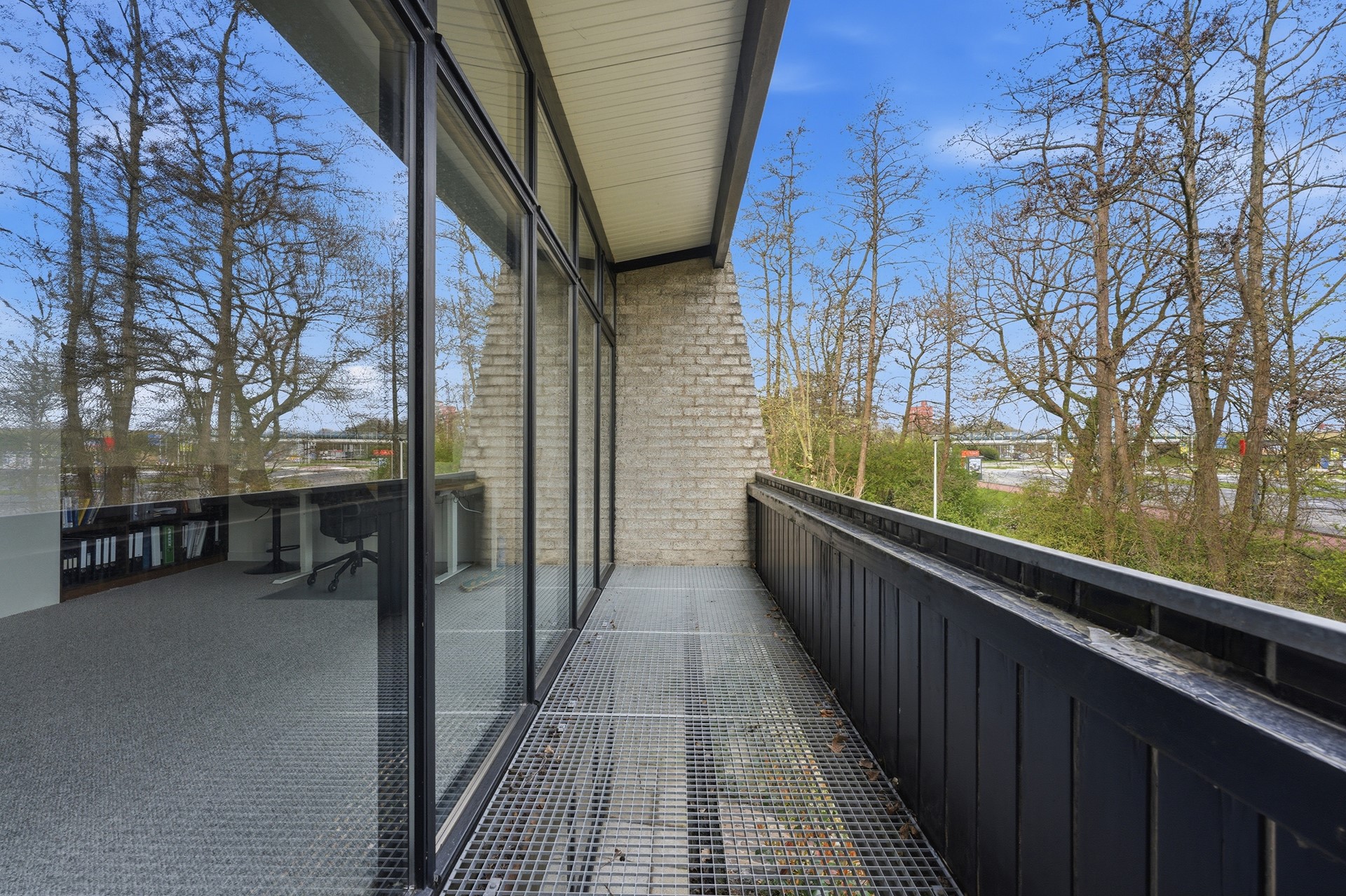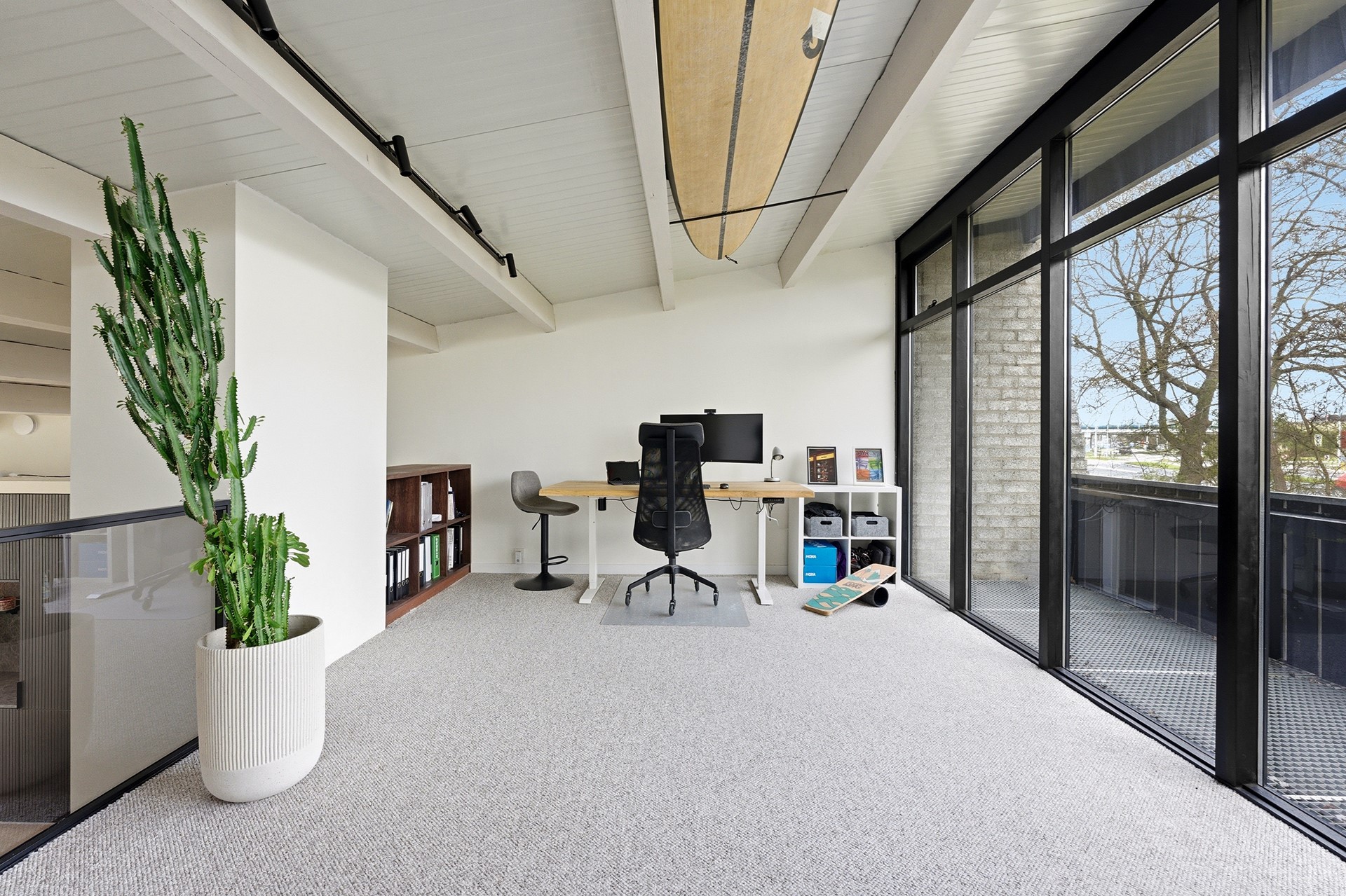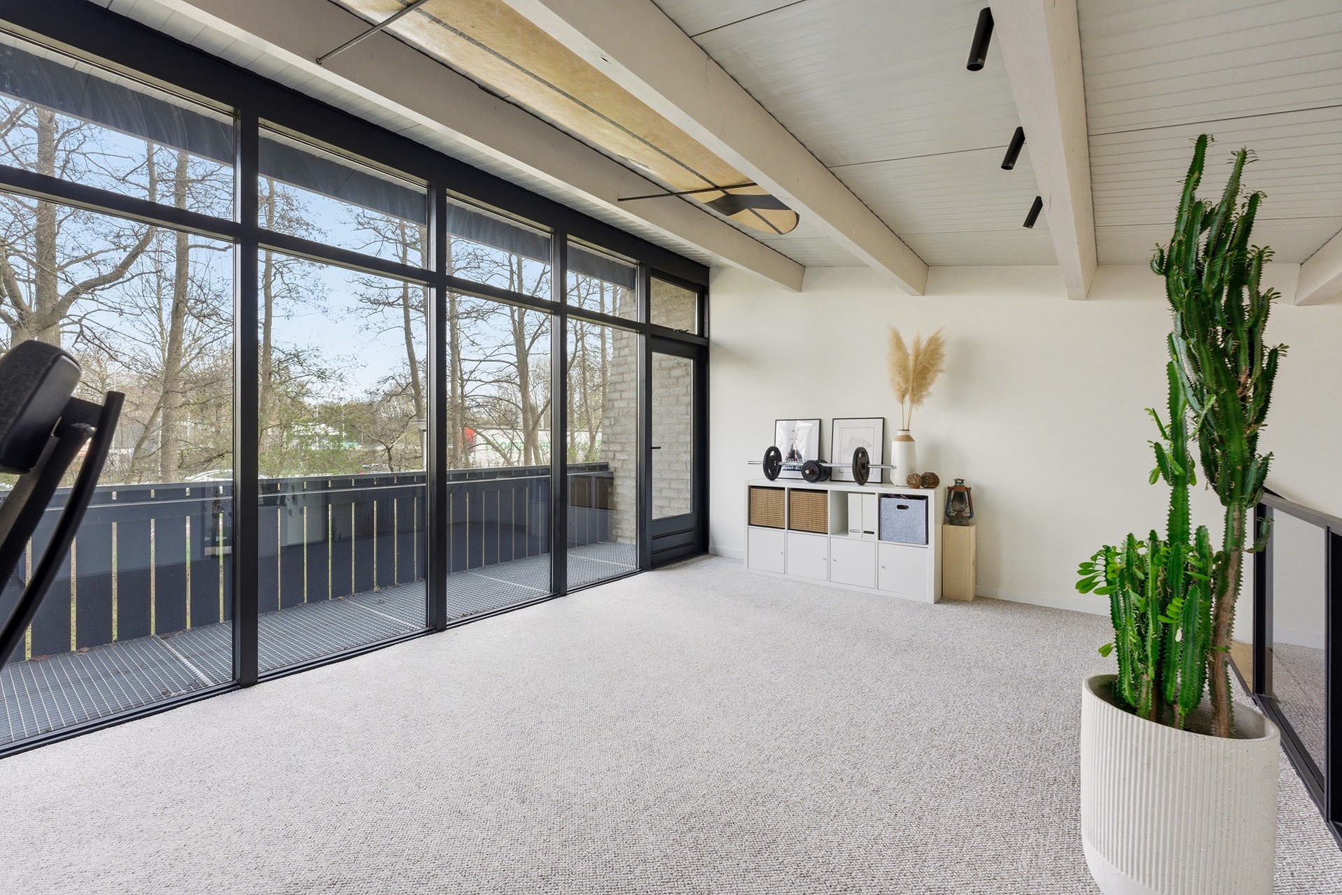 Vide: De vide is bereikbaar via de prachtige trap in de woonkamer en biedt een unieke blik over de gehele leefruimte beneden. Momenteel is deze lichte ruimte ingericht als werkplek, met directe toegang tot het grote balkon aan de voorzijde. Door de open verbinding en de grote raampartijen voelt dit als een inspirerende plek om te verblijven. De wanden zijn strak gestuukt en de vloer is afgewerkt met PVC.